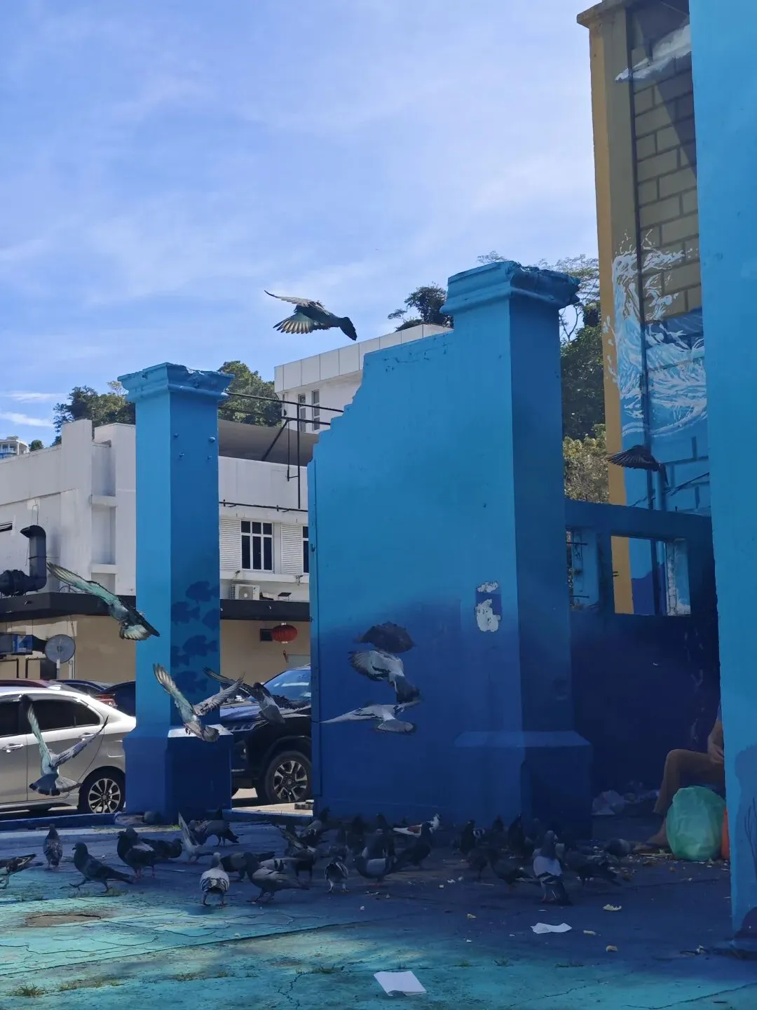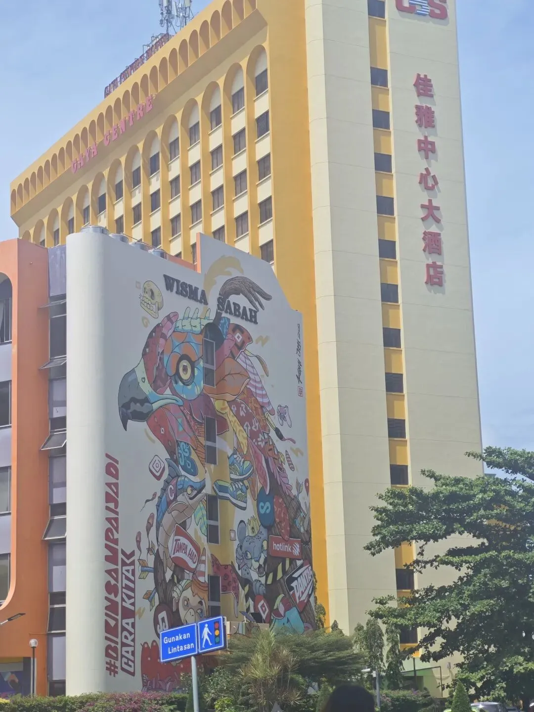 佳雅街附近的又一巨型壁画,画了一只鸟。一到傍晚,附近街上的树上会簇拥满鸟群(听司机讲是乌鸦),它们一起发声的时候,场景很震撼。