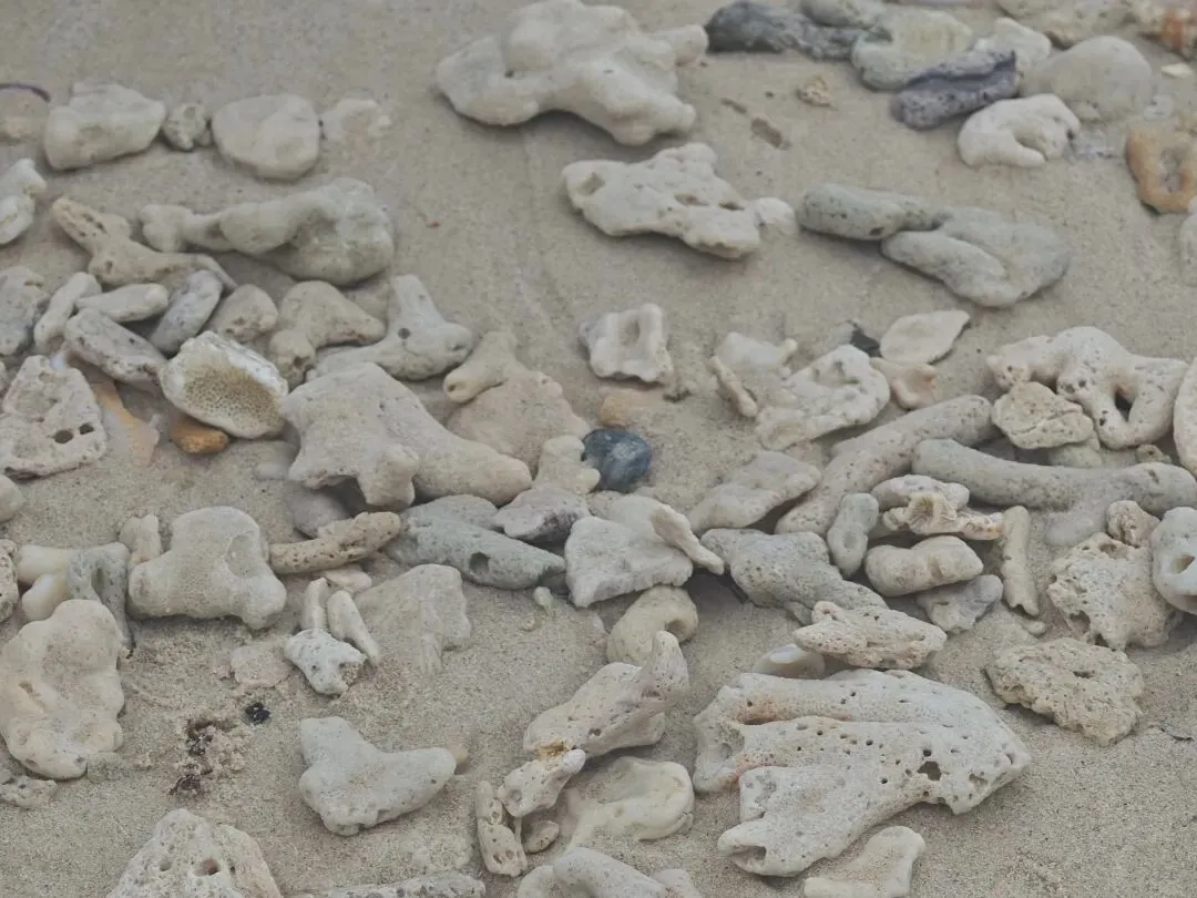 被海浪反复冲涮后的白沙滩,以及海浪留给沙滩上的小惊喜。