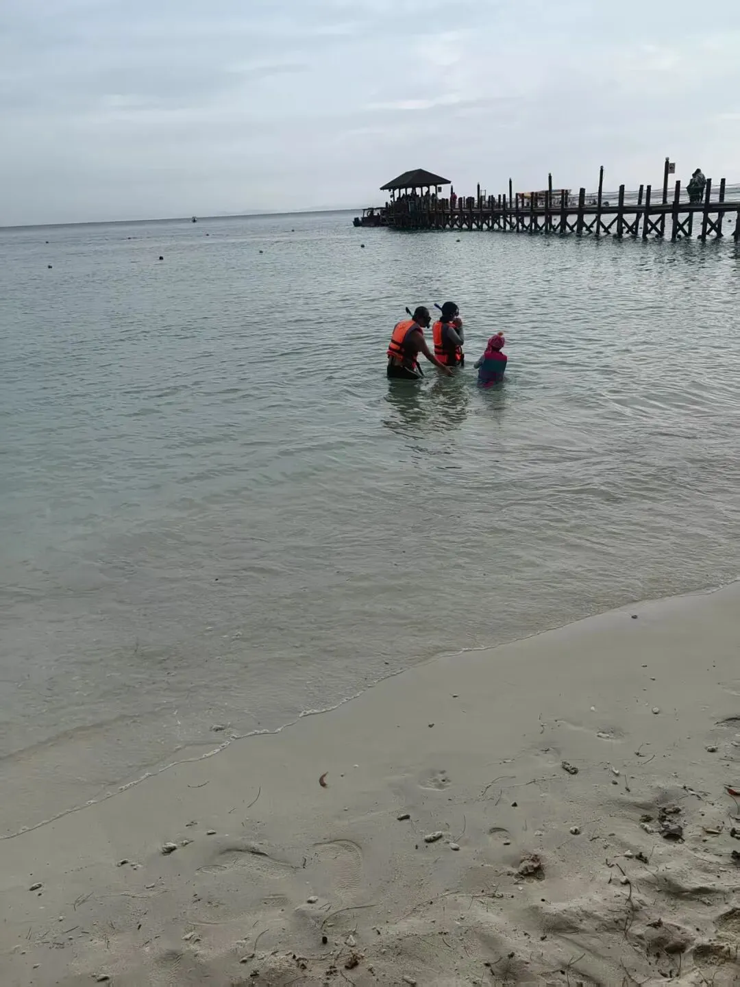 雨天,水温略低,但丝毫没有冷却我们下海浮潜找小鱼的热情。