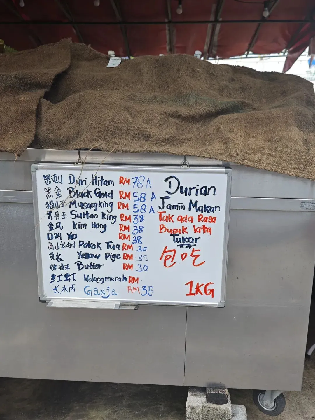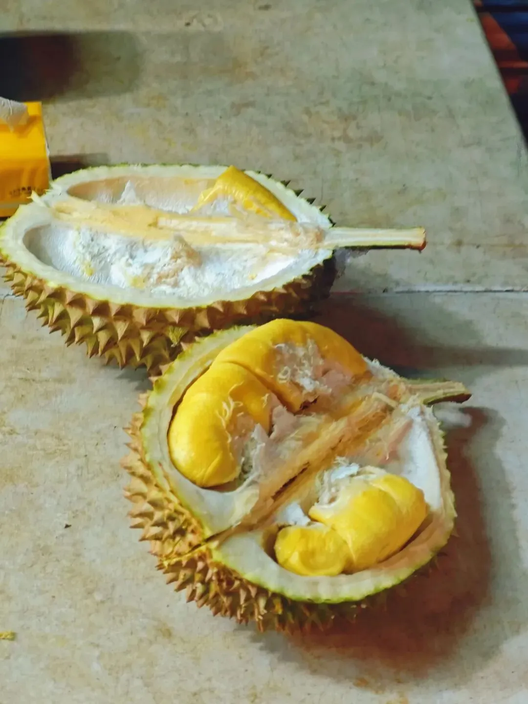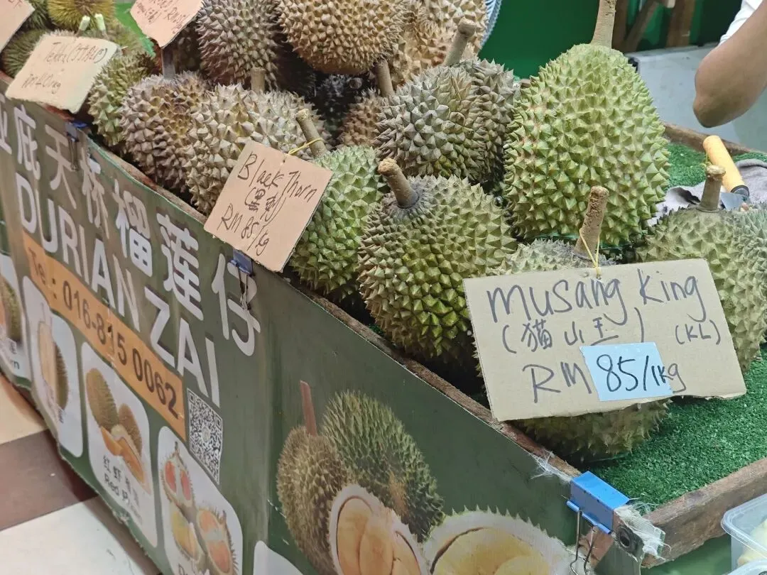 逛早市,吃吃喝喝,回酒店休整后继续来逛亚庇的夜市。天桥榴莲仔的猫山王(本来要的是黑刺,价格一样),附一张后来去槟城吃的黑刺,这一颗黑刺209马币(折合人民币340左右),都好吃。