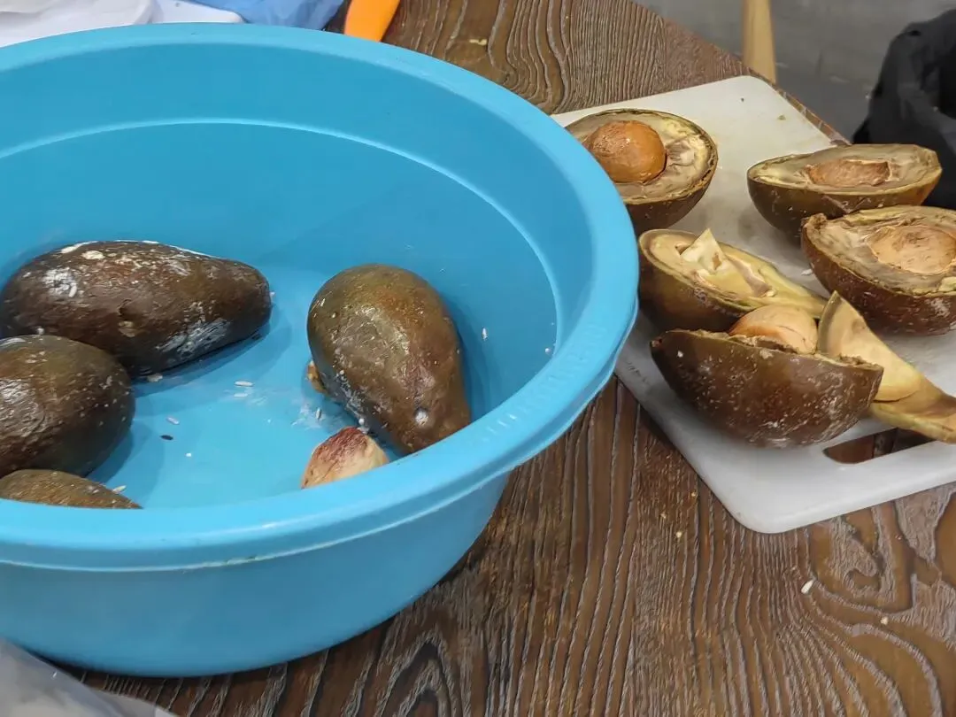 看到店员在捯饬牛油果(颜色比较暗,可能是发酵或者冷藏后的)。