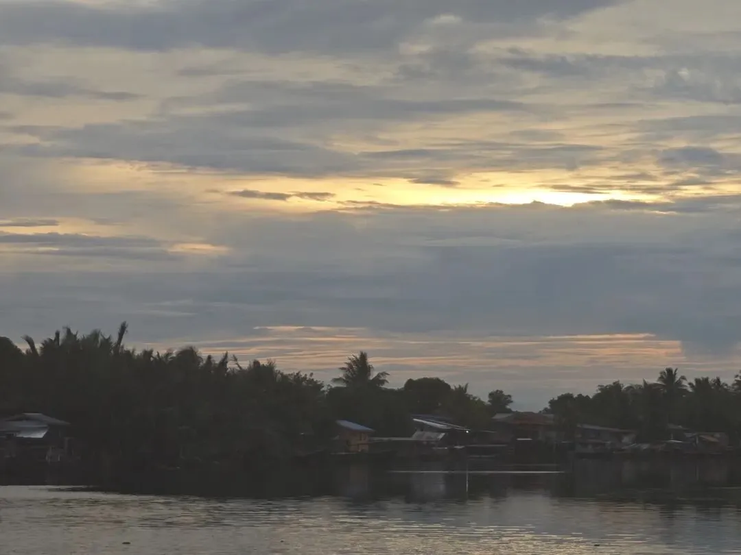 多云天气,没有落日, 看到的一抹晚霞。