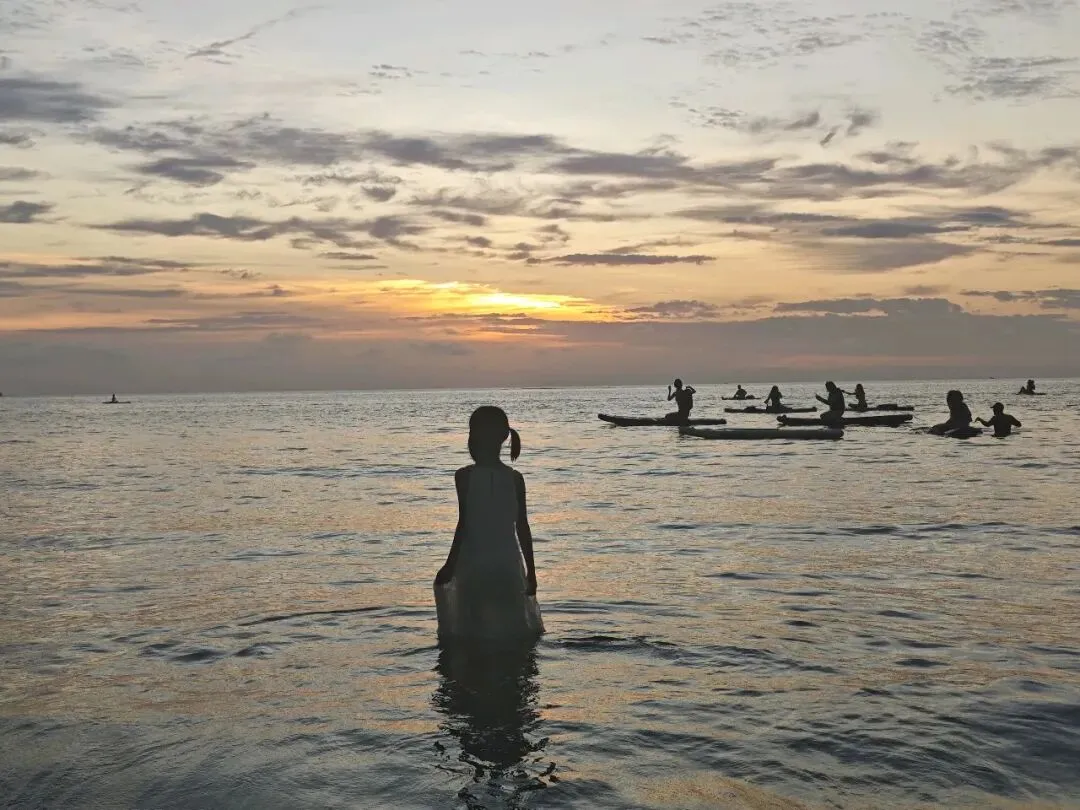 下午的马努干岛浮潜、玩水的人很多,我水性不太好在近处看到水底成群的小鱼就知足了。待到傍晚,人群都散去了,岛上除了海浪声,很静谧。