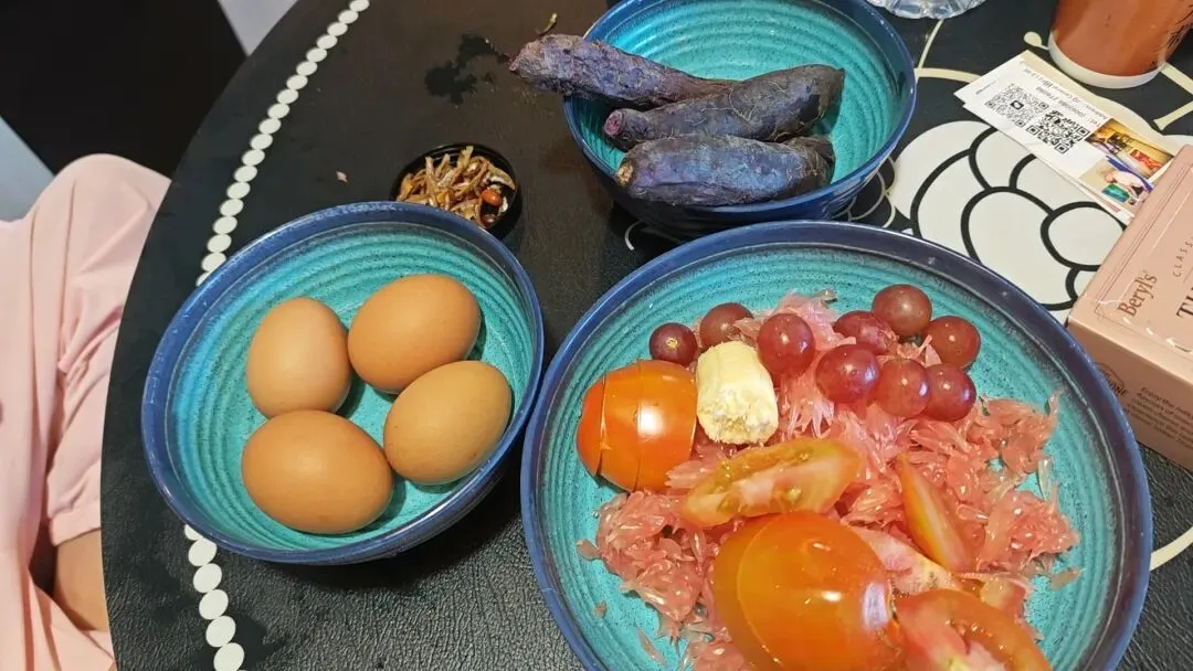 追到落日了,有一种圆满感。大年29早上,大马跟小马奶奶去逛海鲜市场,我在民宿里给小马整的简易早餐。