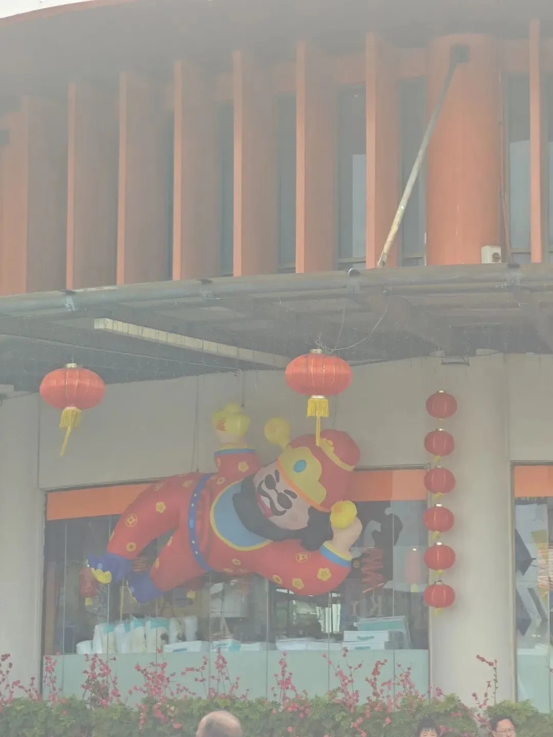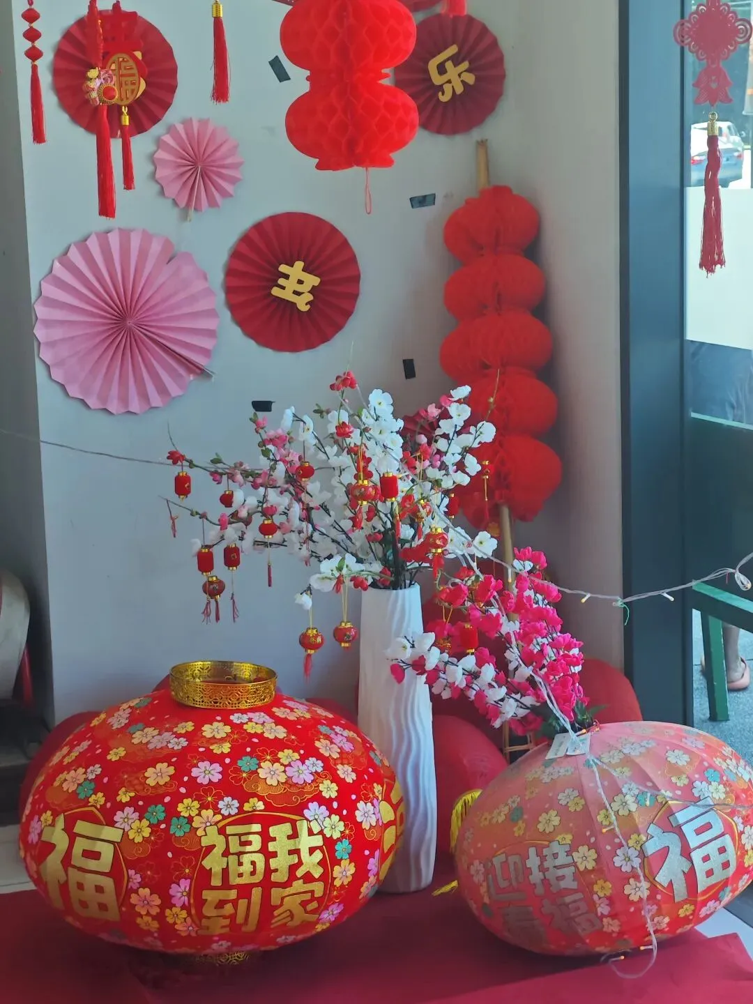 马来整个年味很浓。大概是装饰时太开心,还把年字给贴倒了哈哈。