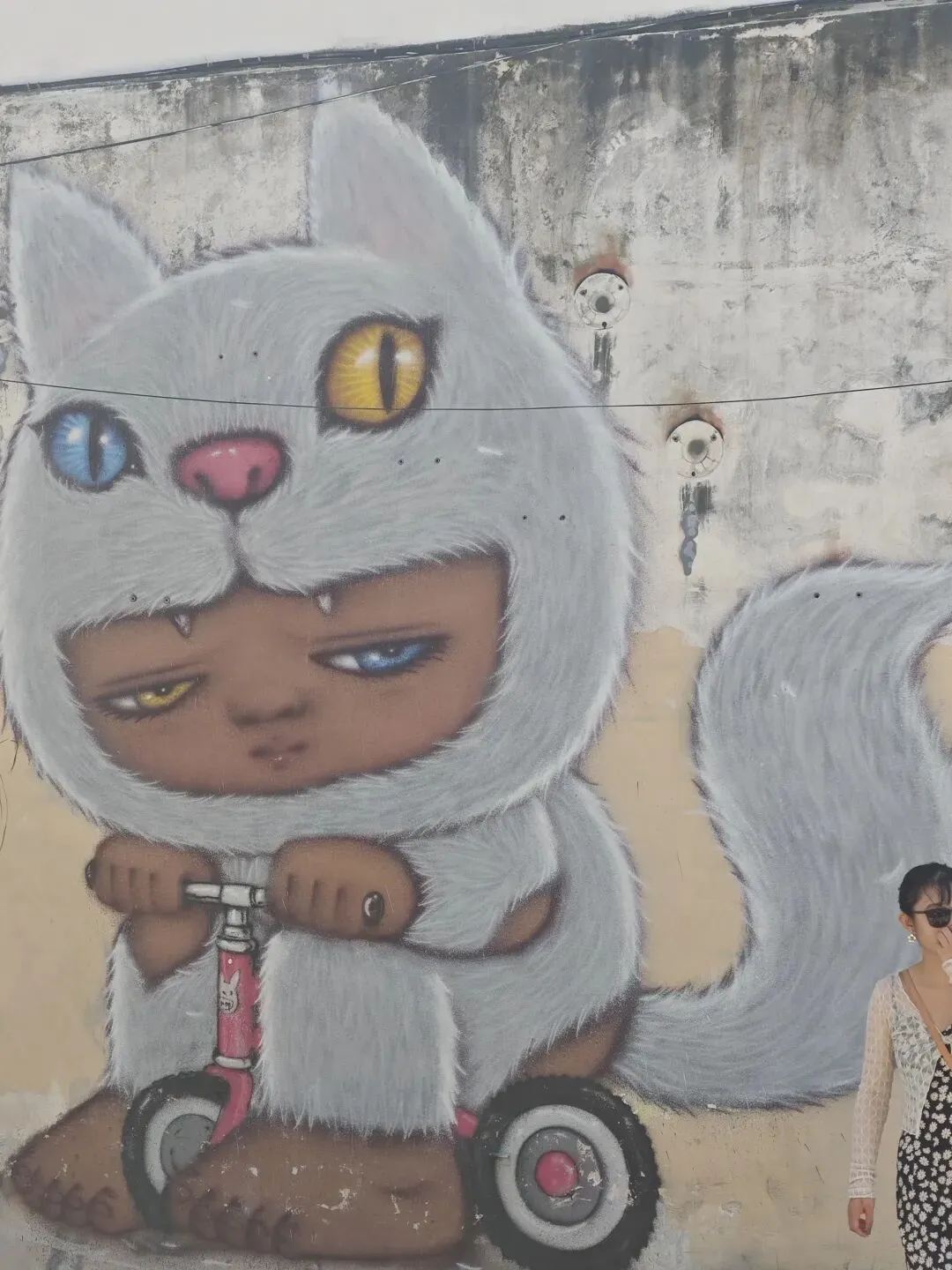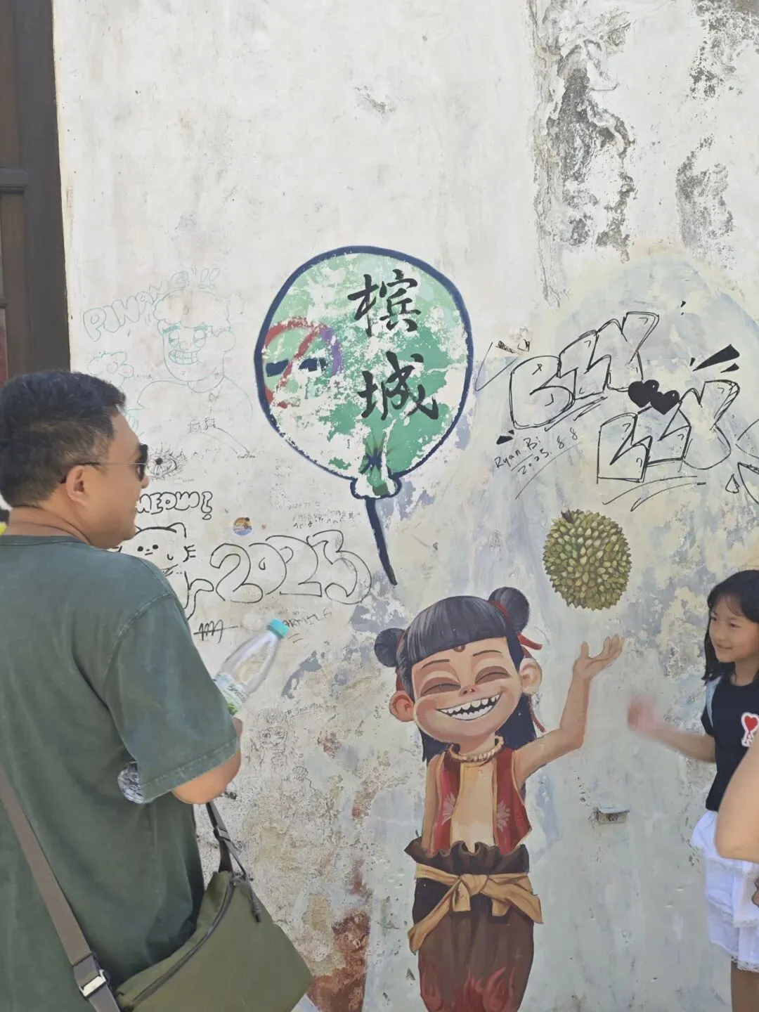 雪王对面的巨幅壁画,吸引了不少路人驻足拍照。