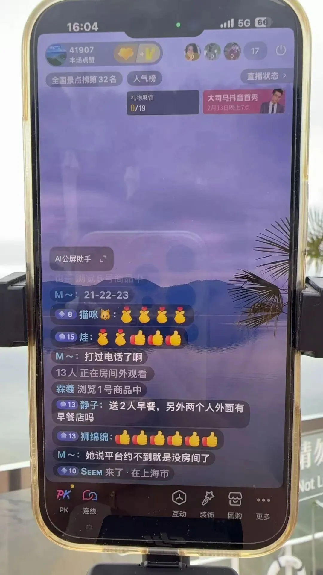 直播间单场销售额达5万元,视频 + 直播总曝光量超 114 万次,累计观看人数达4.9万人,最高在线观看人数达 2900 余人,成功跻身 “全国景点人气榜” 第 32 名,云端热度居高不下。