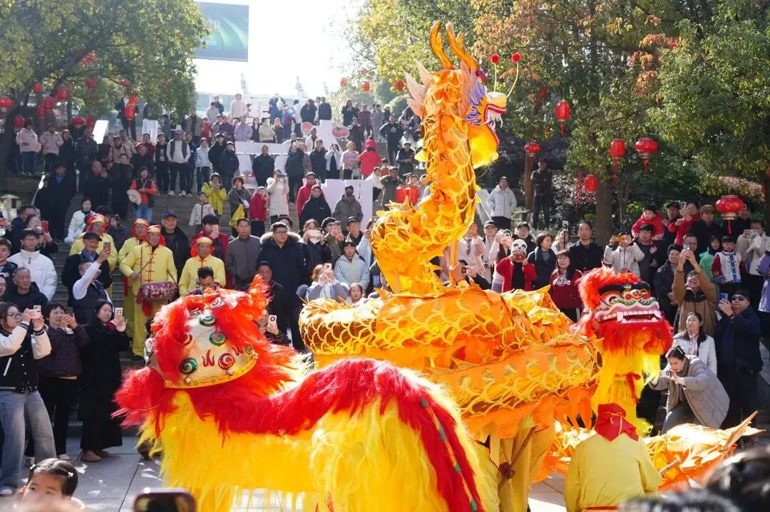 大年初四,铿锵有力的舞龙舞狮、古拙神秘的傩舞祈福精彩上演,将新春喜乐氛围推向高潮。