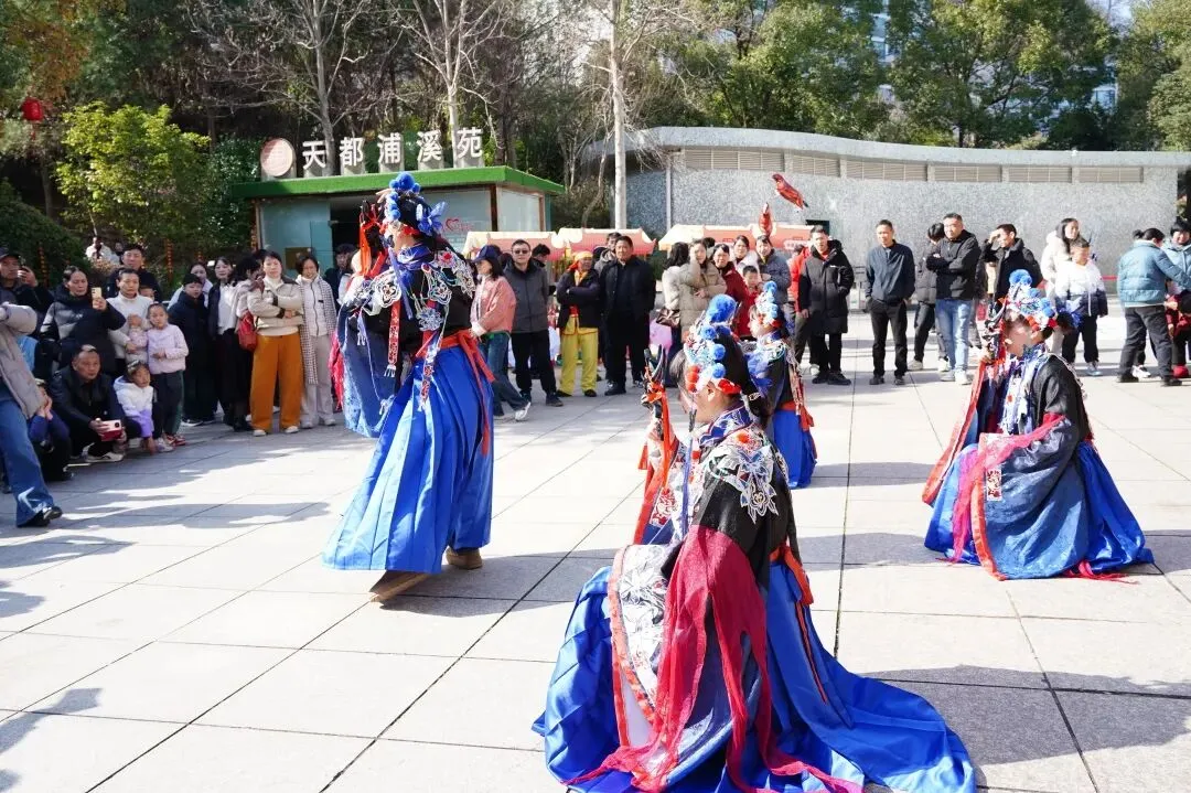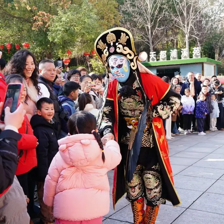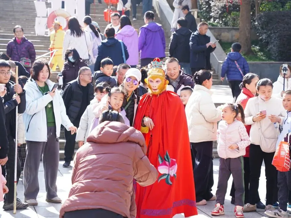 大年初一至初七,景区好戏连台,每日上演的川剧变脸绝技惊艳四座,“猴王贺岁” 与鱼灯巡游互动趣味十足,此外,景区还推出了多场限定主题活动。