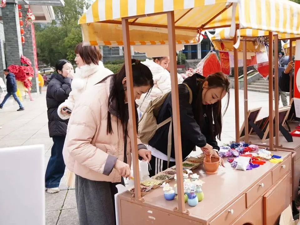 为了让游客沉浸式体验传统文化,景区专门设置非遗手工体验区,让游客体验亲手制作传统工艺品的乐趣;同时投壶、趣味问答等小游戏轮番开启,吸引了大量游客参与并将一份新春惊喜带回家。