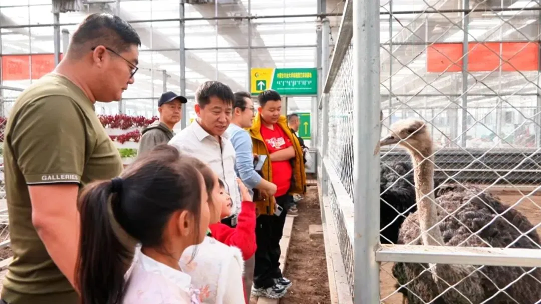 “今天带孩子来农博园,感受一下大自然,了解这些植物的生长过程。在园内也看到了许多小动物,鹦鹉、鸵鸟、孔雀。一家人非常开心,很棒的一次体验。欢迎大家一起来土右旗农博园,欢欢喜喜过大年。”