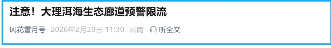 为了保障您在大理洱海生态廊道的游览体验,确保廊道内的秩序与安全,现就近期游客高峰时段的游览提示及限流措施通知如下: