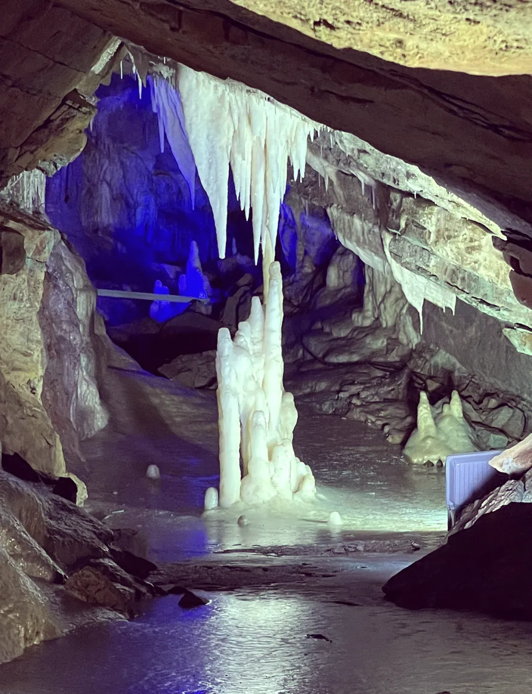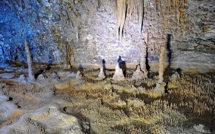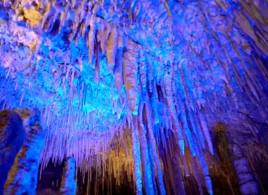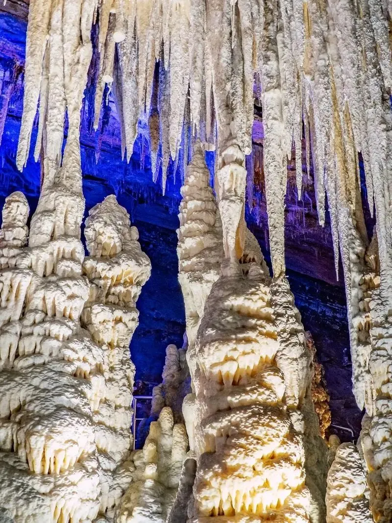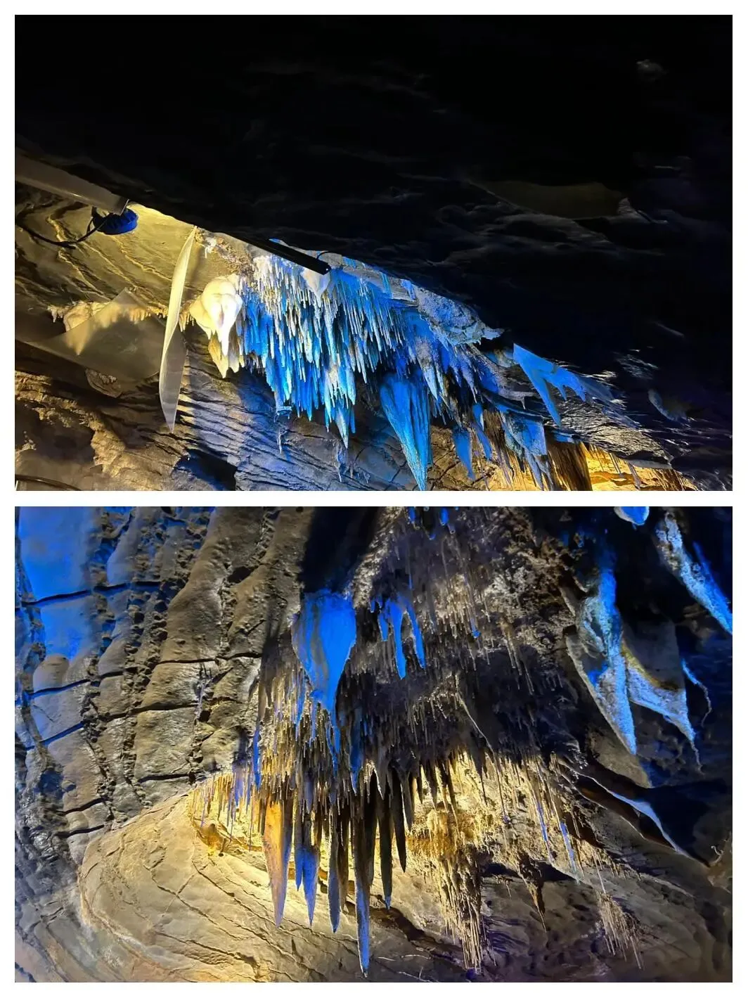 第四件是“鹅管林”。鹅管是钟乳石最原始的形态,中空如鹅毛。雪玉洞的鹅管密密麻麻倒挂空中,密度之高堪称世界之最。这些鹅管细得像吸管,稍不注意就会碰断,所以千万别伸手去摸 。