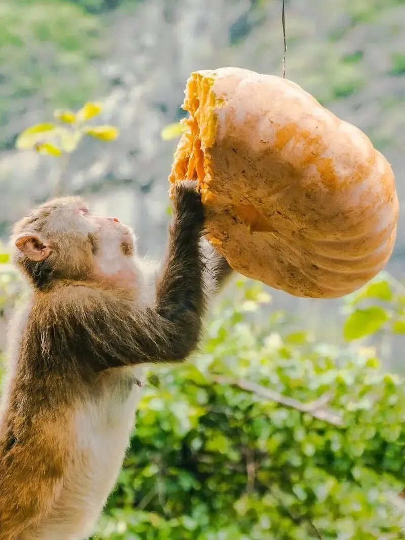 第三是路上的猴子。 从景区大门到洞口,要沿崖壁栈道走一二十分钟。这一路上经常能碰见野生猕猴,它们不怕人,看见塑料袋会毫不客气地抢。手里别拿吃的,也别当着猴子的面翻包 。