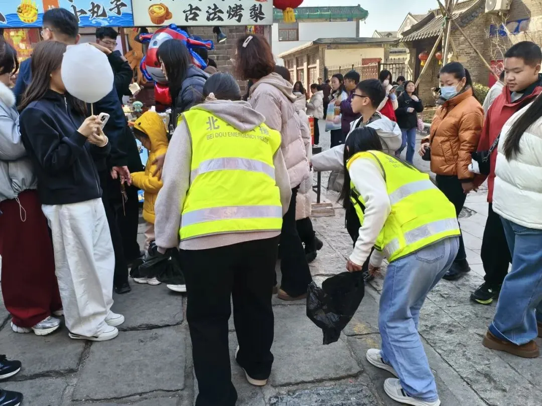 不知不觉间春节假期已悄然过半,这份热闹欢腾的背后,是一抹始终坚守在一线的鲜亮“志愿红”。春节假期期间,淄博市周村区志愿服务联合会组织广大志愿者全程值守在周村古商城的各个角落,从景区入口的游览咨询、路线引导,到街巷深处的环境卫生清理、市容守护,从人流密集处的秩序维护、安全疏导,到随时待命的应急救助、暖心帮扶,志愿者们把细致入微的服务融入游览的每一个环节,第一时间响应游客诉求,妥善解决旅途中的各类难题,用实打实的行动,为每一位远道而来的来淄游客,送上全程贴心、暖心、放心的“店小二”式志愿服务。