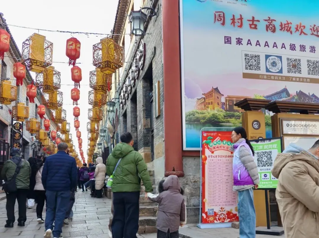 福马贺岁,年味正酣。当千家万户还沉浸在春节团圆的喜悦之中,周村古商城里依旧人潮涌动、烟火升腾,来自五湖四海的游客齐聚于此,沉浸式打卡千年商埠的新春盛景,在青砖黛瓦间感受浓浓的民俗年味。
