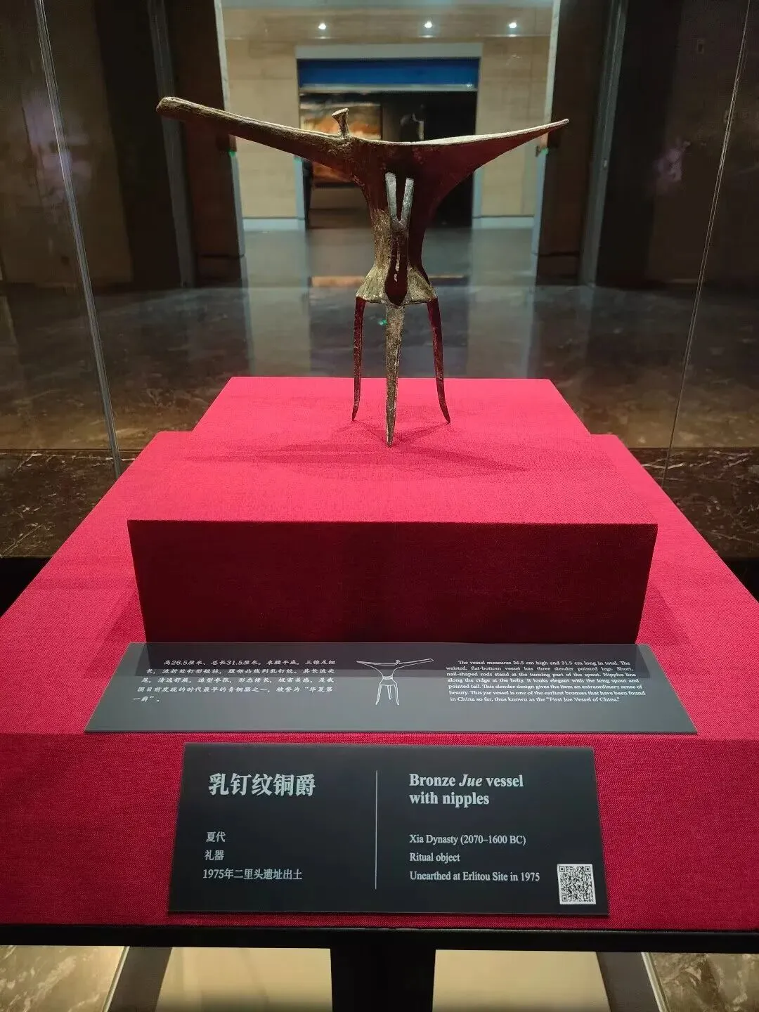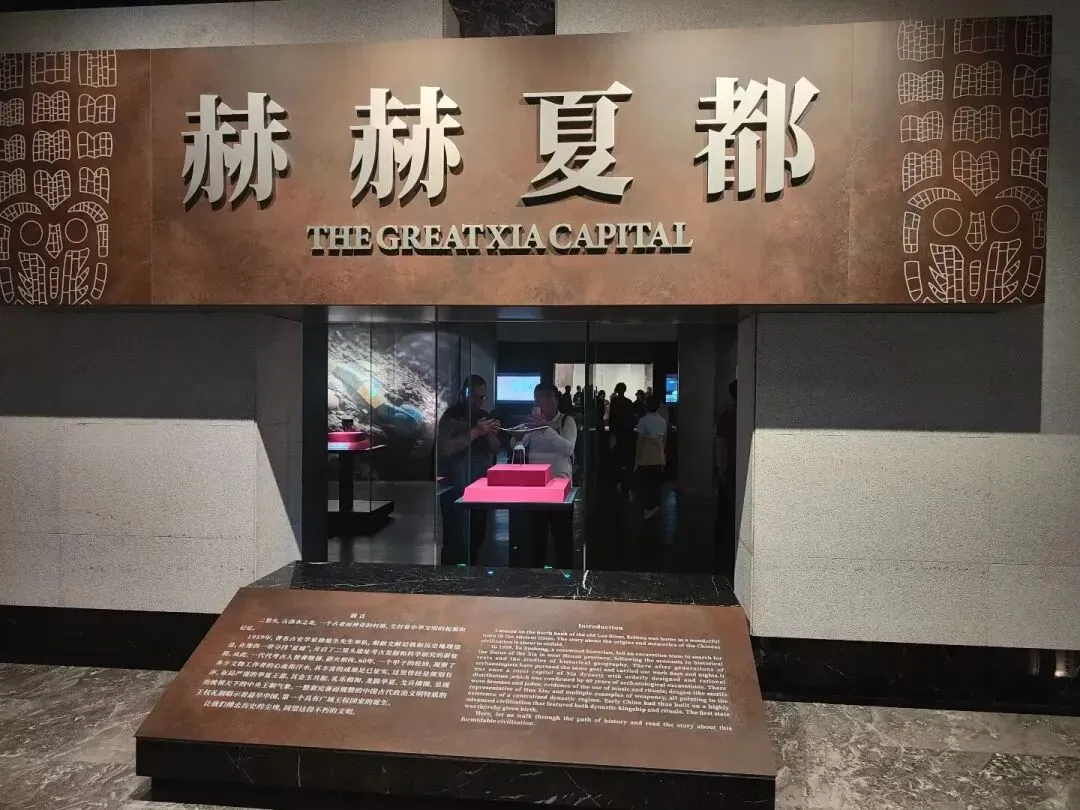 “赫赫夏都”是基本陈列的第二部分,由第二、三、四展厅共同呈现。其中,第二展厅“国之大事”围绕祭祀与战争两件国事,通过青铜器、玉器、绿松石器、陶器等精品文物,集中展现了夏代的祭祀、酒礼、乐制、玉文化及兵器制度,并辅以二里头遗址六十年考古大事记。第三展厅包含“建中立极”与“回望大都”单元,前者通过动植物遗存、城市遗迹和手工业遗物展示夏代都城的环境、布局与国家结构,后者则运用多媒体技术全景式解读二里头遗址。第四展厅由“厥土生民”和“巍巍华夏”单元组成,前者从出土的生产生活器具出发,再现夏都民众的生活图景;后者则阐述二里头文化如何吸收融合各地文明元素,首次突破地理单元制约,形成广域王权国家的历史进程。