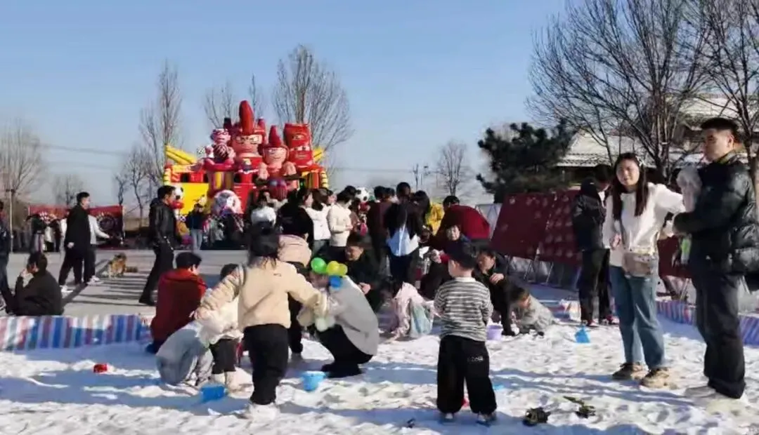 冰雪乐园区里,滑雪圈极速飞驰、威亚表演惊险刺激,全年龄段游客都能找到专属乐趣。亲子游玩区趣味升级,抓兔子比赛、雪地撒欢、打雪仗互动不停,孩子们嬉笑奔跑,大人们重拾童真,全家人尽享冰雪之乐。现场更有互动赢银票趣味玩法,银票可兑换体验项目,游园更添惊喜。
