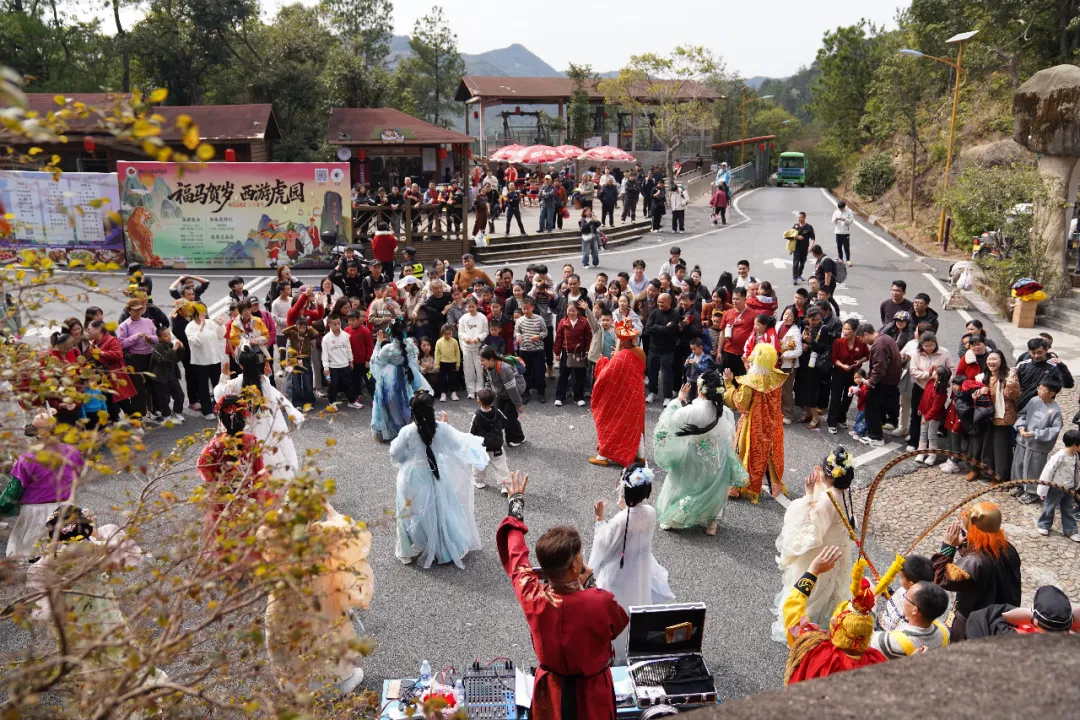 古田旅游区推出的“红动古田・成功起点 马到功成”沉浸式体验活动备受青睐,红色知识与客家民俗问答、红歌联唱等互动环节吸引游客踊跃参与。梅花山华南虎生态旅游区“福马贺岁 西游虎园”新春游园会出圈走红,全员NPC互动、主题巡游等趣味环节圈粉众多亲子家庭。两大景区以特色鲜明、趣味十足的文化盛宴供给,为游客打造了年味浓郁的新春体验,也让古田梅花山文旅品牌影响力持续提升。
