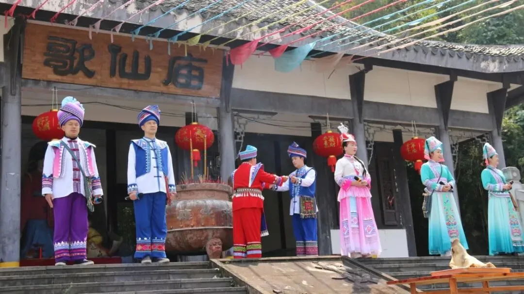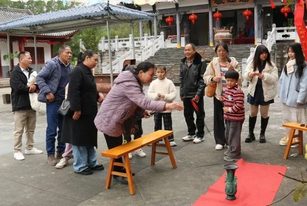 歌仙庙内香雾缭绕,成为当日最热闹的祈福胜地。游客们手持香烛,在庄重的仪式中虔诚祭拜,祈求歌仙护佑新的一年平安顺遂、万事兴旺。