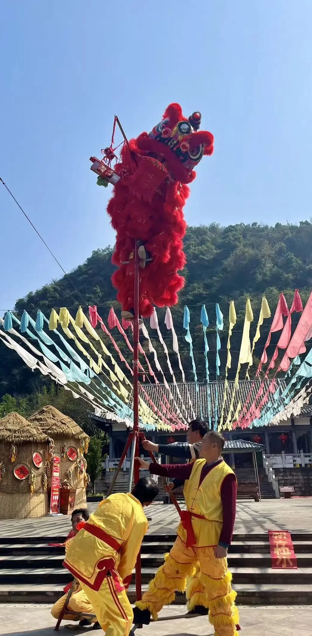 歌仙庙绣球广场上,《舞狮闹新春》震撼登场,鼓点震天、祥狮腾跃,将现场气氛推向高潮。传统舞狮队采青纳祥,威武的狮子在人群中灵动跳跃,把象征福运的 “青” 送到游客手中,寓意新的一年红红火火、财运亨通。
