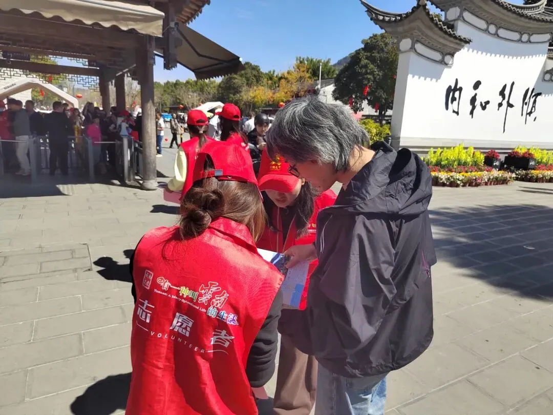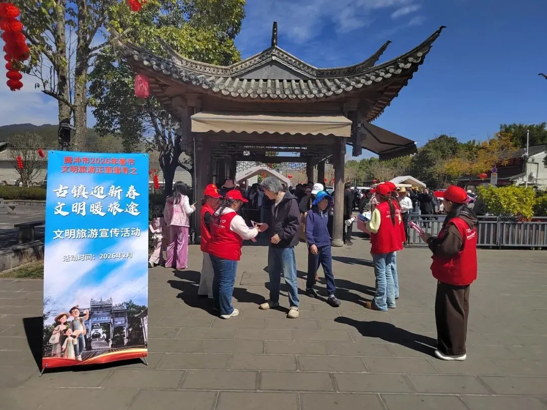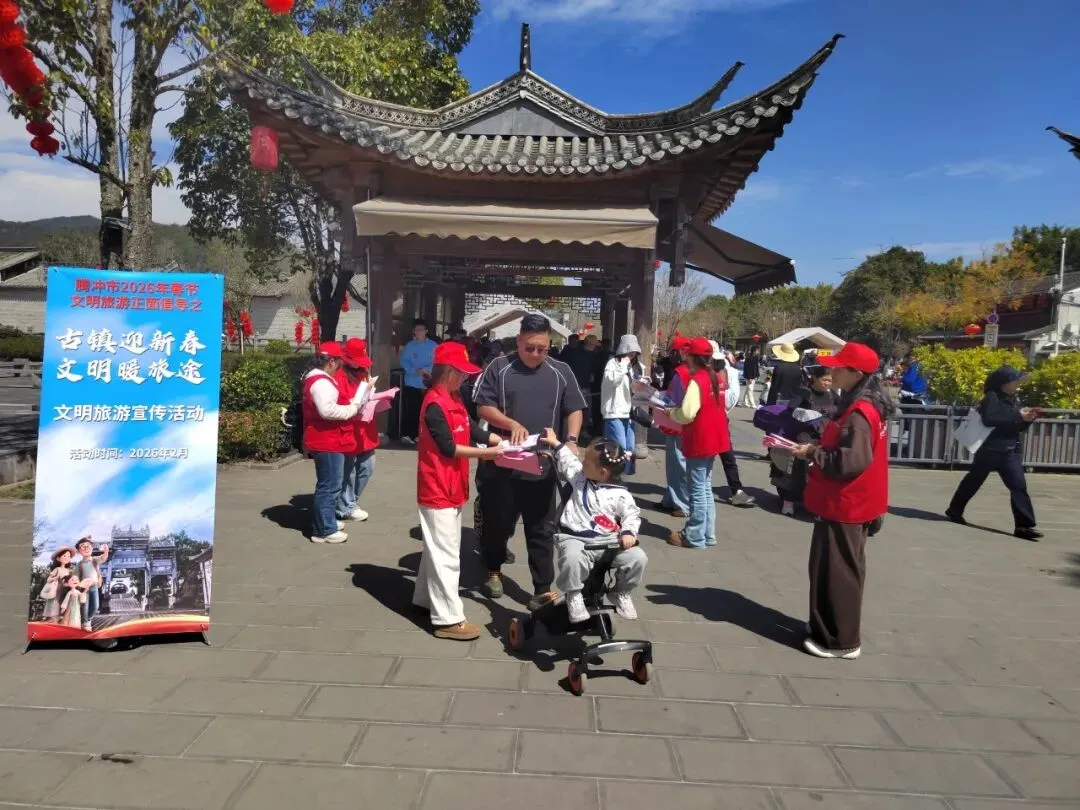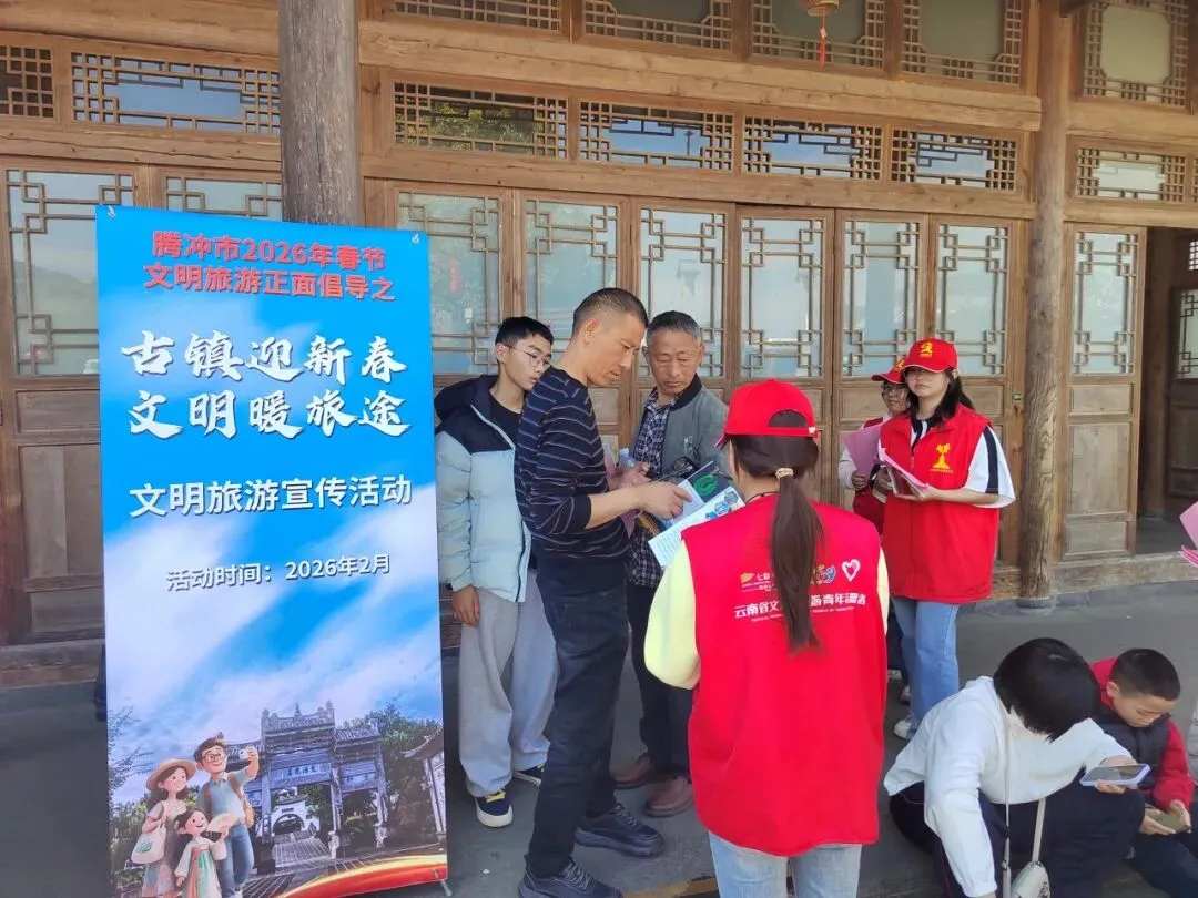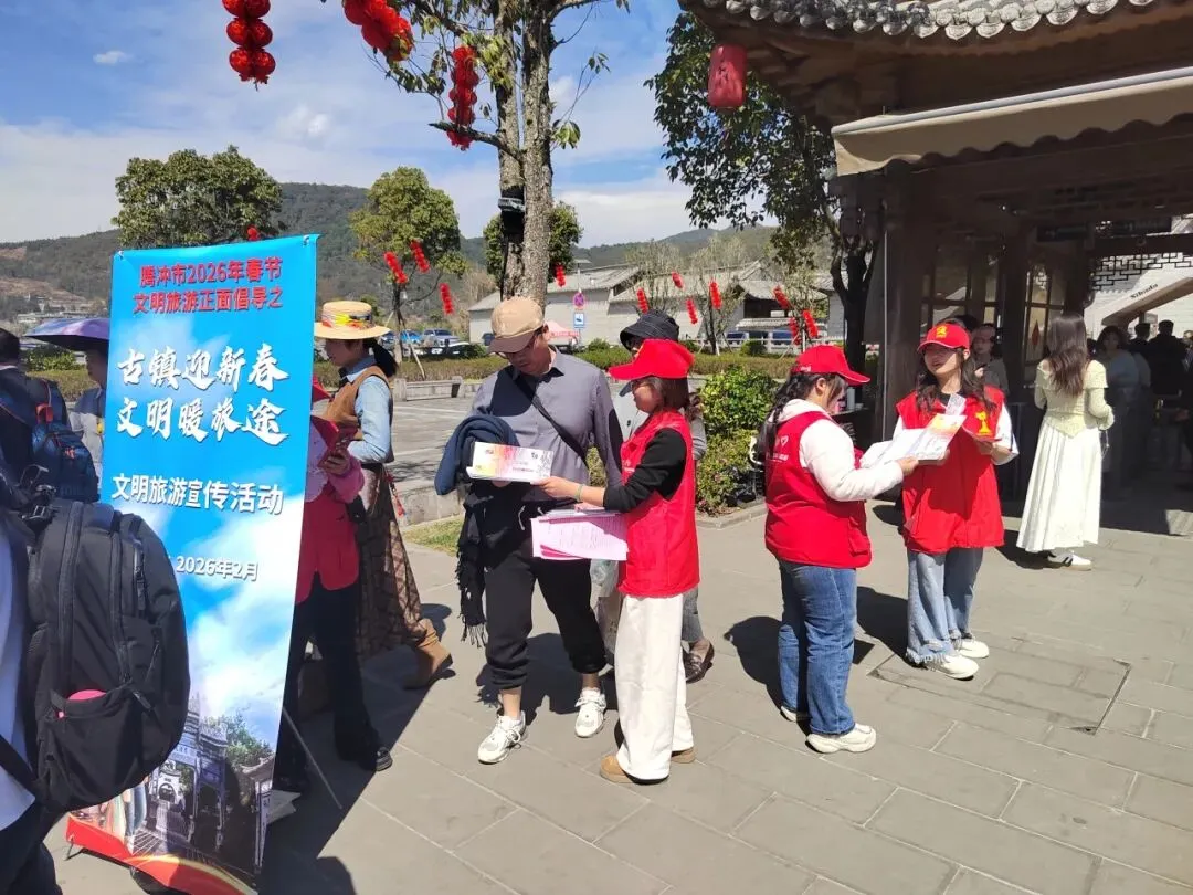 新春佳节,古镇焕新。为大力弘扬文明旅游新风尚,营造安全、有序、祥和的节日旅游环境,2月20日,腾冲市委文明办组织新时代文明实践志愿者走进和顺镇,开展2026年文明旅游正面倡导之“古镇迎新春·文明暖旅途”宣传服务活动,以志愿红点亮古镇年味,用文明风温暖游客旅途。