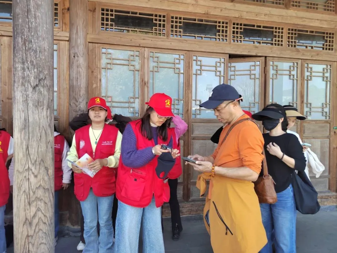 活动中,文明实践志愿者们身着志愿服装,在景区入口、核心景点、人流密集区域分工协作、有序服务。大家向过往游客与当地群众发放文明旅游宣传资料,细致讲解文明出游、安全出行、爱护文物、保护环境等相关知识;在景区门口协助检票、引导分流,维护游览秩序,提供线路咨询、行李帮扶等暖心服务;对随地吐痰、乱扔垃圾、大声喧哗、违规拍照等不文明行为进行耐心劝导,引导游客自觉遵守景区规定,尊重古镇历史文化与民俗风情。