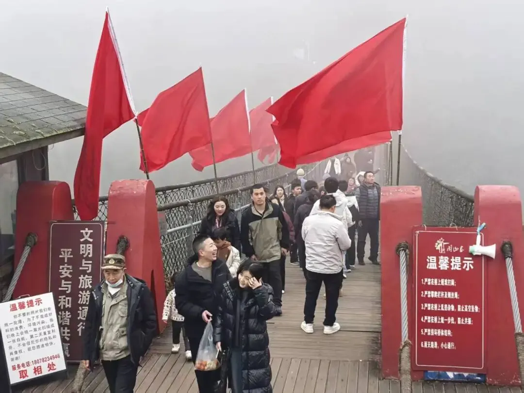 今年恰逢红军长征胜利90周年。大年初二,娄山关景区诗词碑、长空桥等景点人流如织。长空桥上红旗招展,游客们或扶老携幼,或结伴而行,纷纷打卡留念。在纪念碑前,人们静听风声,感受红色文化的厚重与新春佳节的喜庆交相辉映。