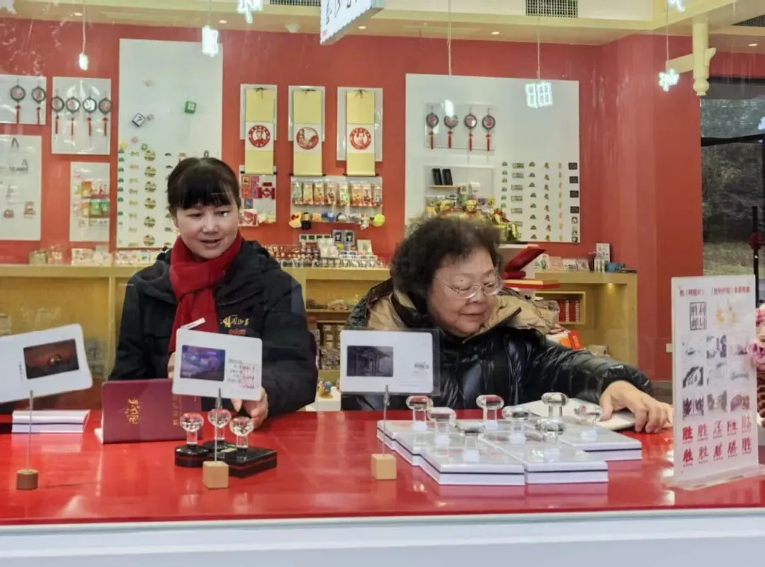 在游客中心,“胜利邮局”备受青睐。游客在这里精心挑选“娄山关大捷”系列邮品、战地家书明信片,不少人在工作人员帮助下收集特色邮戳,留下一份独特的红色纪念。