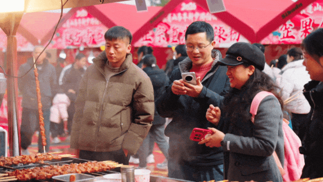 烟火市集里,烤串、糖画等特色美食与文创好物齐聚,逛吃逛玩一站式解锁,每一处都挤满了前来打卡的游客。