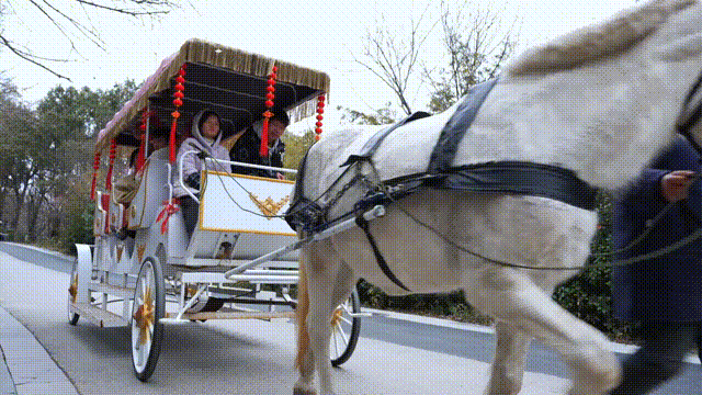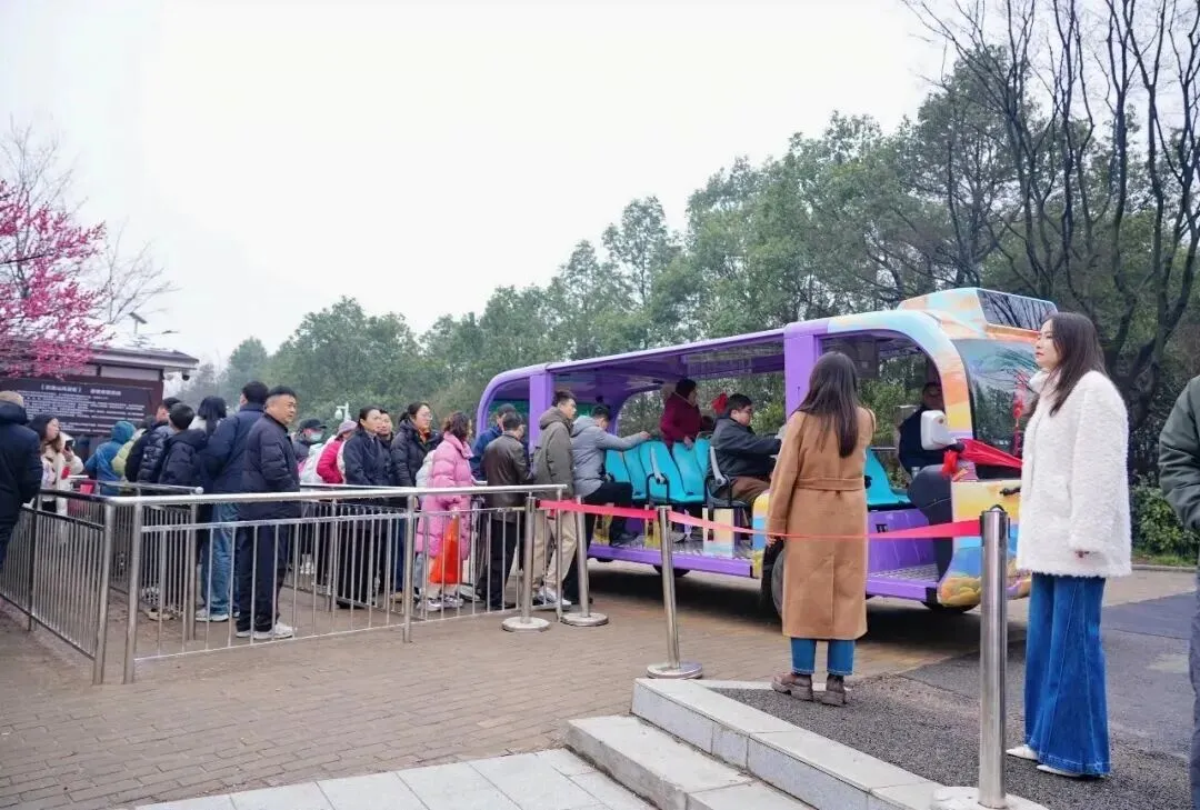 最受欢迎的当属景区特别推出的“新春祈福登山马车”体验,“马到成功”的美好寓意吸引了大批游客排队等候,队伍蜿蜒绵长,宛如一条长龙,从山门一直延伸到仙人湖。