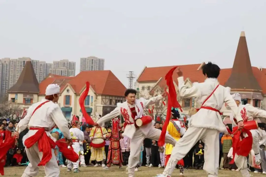 安塞腰鼓的雄浑激昂与英歌舞的刚劲有力激烈PK,鼓点铿锵、舞姿飒爽,点燃全场热情。