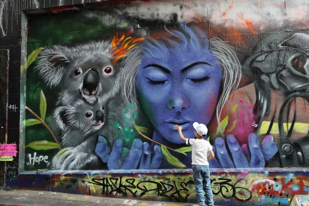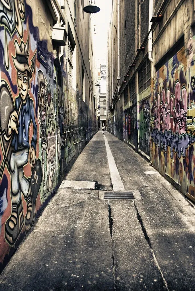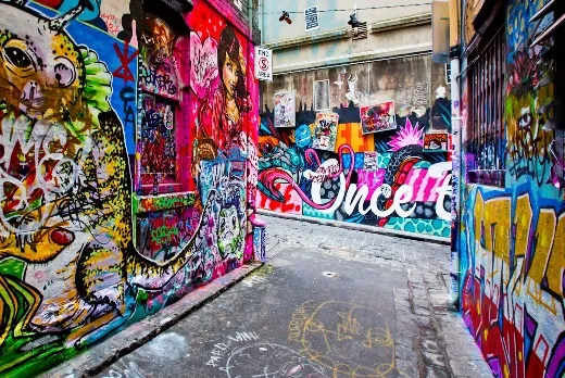 墨尔本的涂鸦文化,巷内多条通道都喷满涂鸦,各种七彩涂鸦中不乏国际大师手笔,已成墨尔本一大观光景点,也被《Lonely Planet》,选为澳洲文化景点首选。