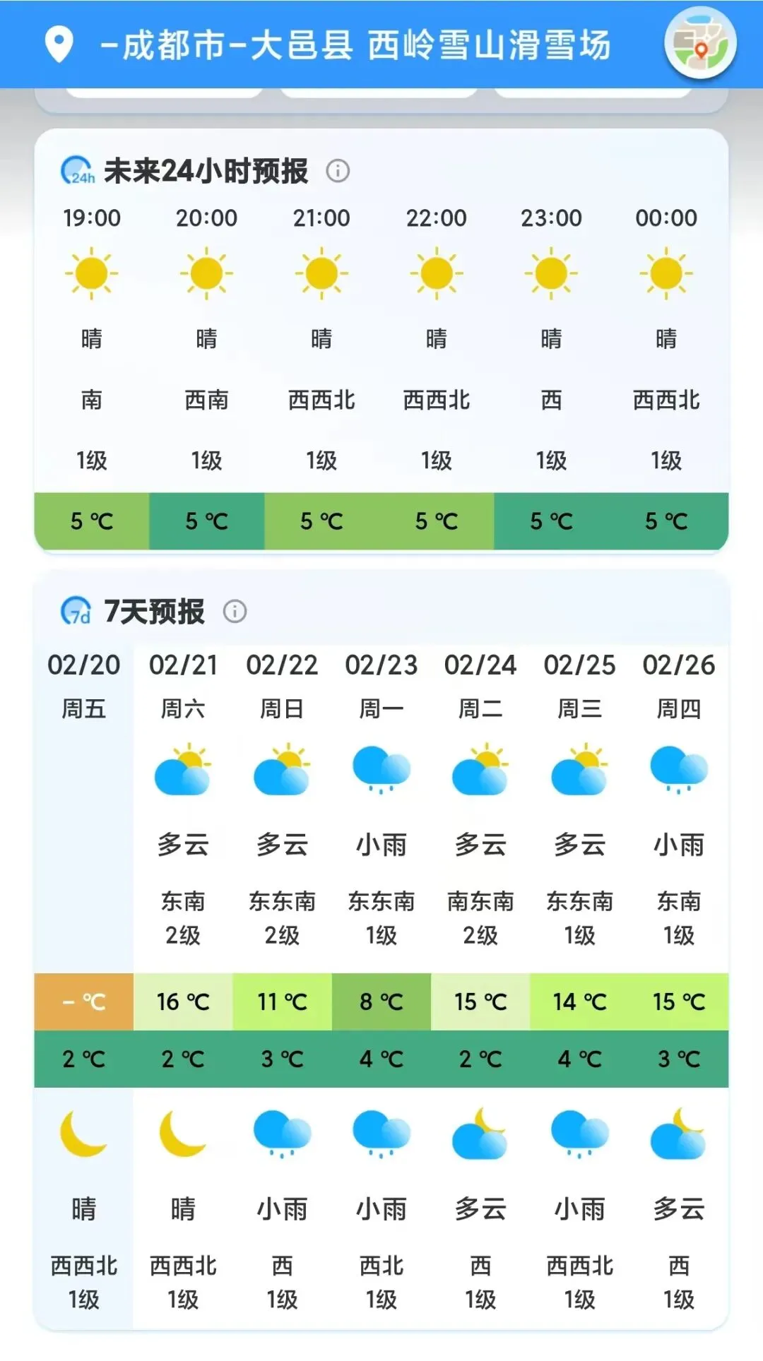 西岭雪山景区2月21日(初五)气象预报