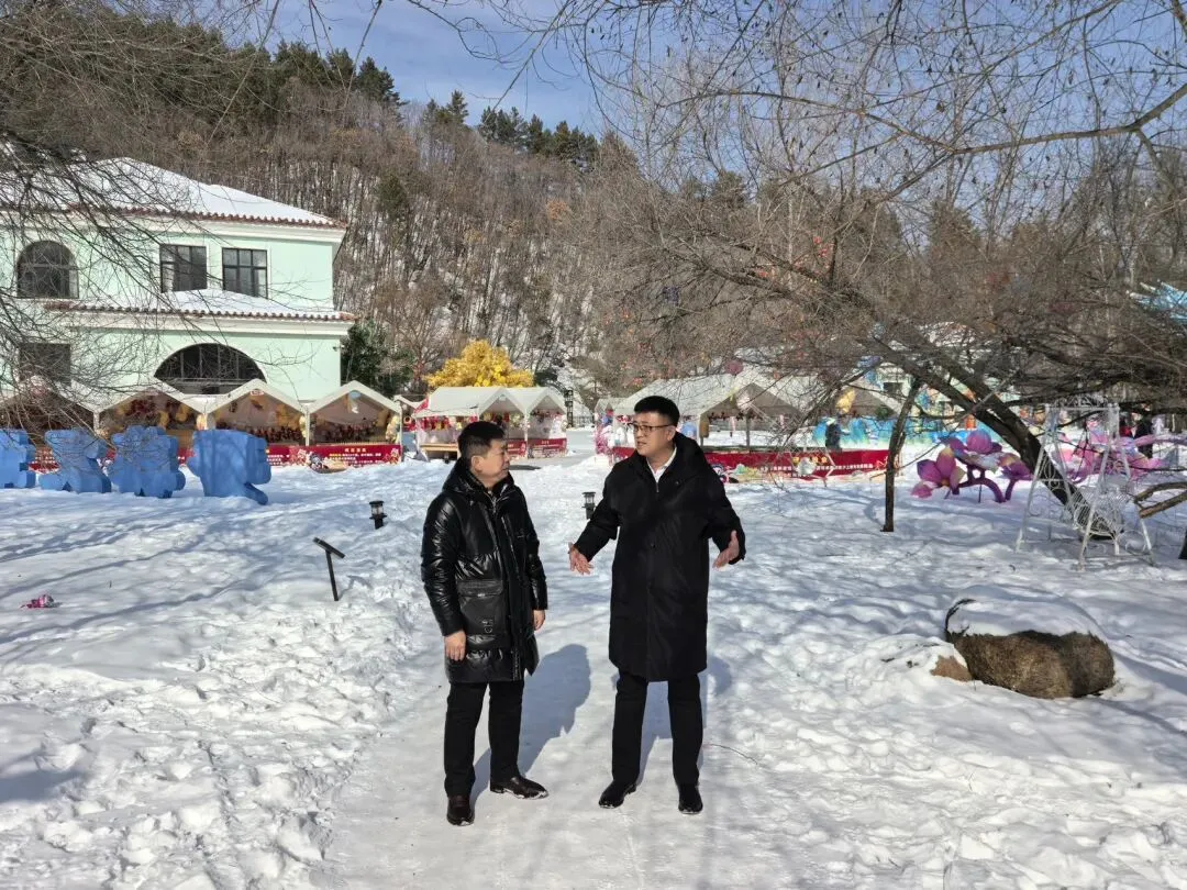 在松桦语境园,方春彪来到花灯展区、冰上游乐区,检查花灯结构安全、线路铺设规范和冰上游乐项目防护措施。要求开展拉网式隐患排查与安全评估,及时加固花灯、完善预案、强化培训,营造安全游玩环境。