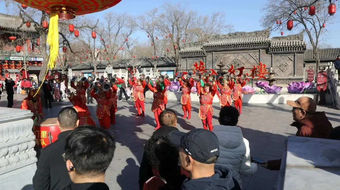 在荣国府景区,国家级非遗常山战鼓在这里激情敲响,每一声鼓响都敲在了游客的心坎上,既奏响了新春的喜庆乐章,也敲出了正定最地道的年味儿。游客们驻足观赏,纷纷拿出手机记录下这热闹瞬间,现场氛围热烈非凡,大家沉浸在浓浓的新春喜悦中,流连忘返。