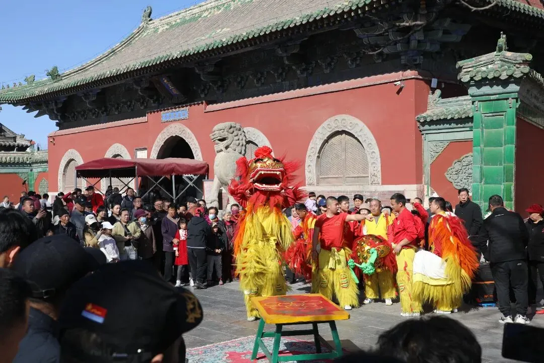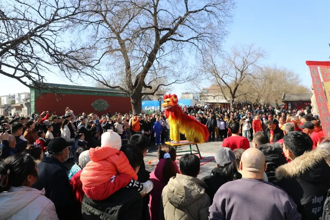 除了荣国府的战鼓喧天,隆兴寺前的舞狮表演同样精彩纷呈。伴随着欢快的锣鼓声,狮子昂首挺胸、灵动跳跃,憨态可掬又气势十足,引得现场游客阵阵欢呼喝彩,让每一位驻足观赏的游客都感受到了浓浓的年味儿与传统文化的魅力。