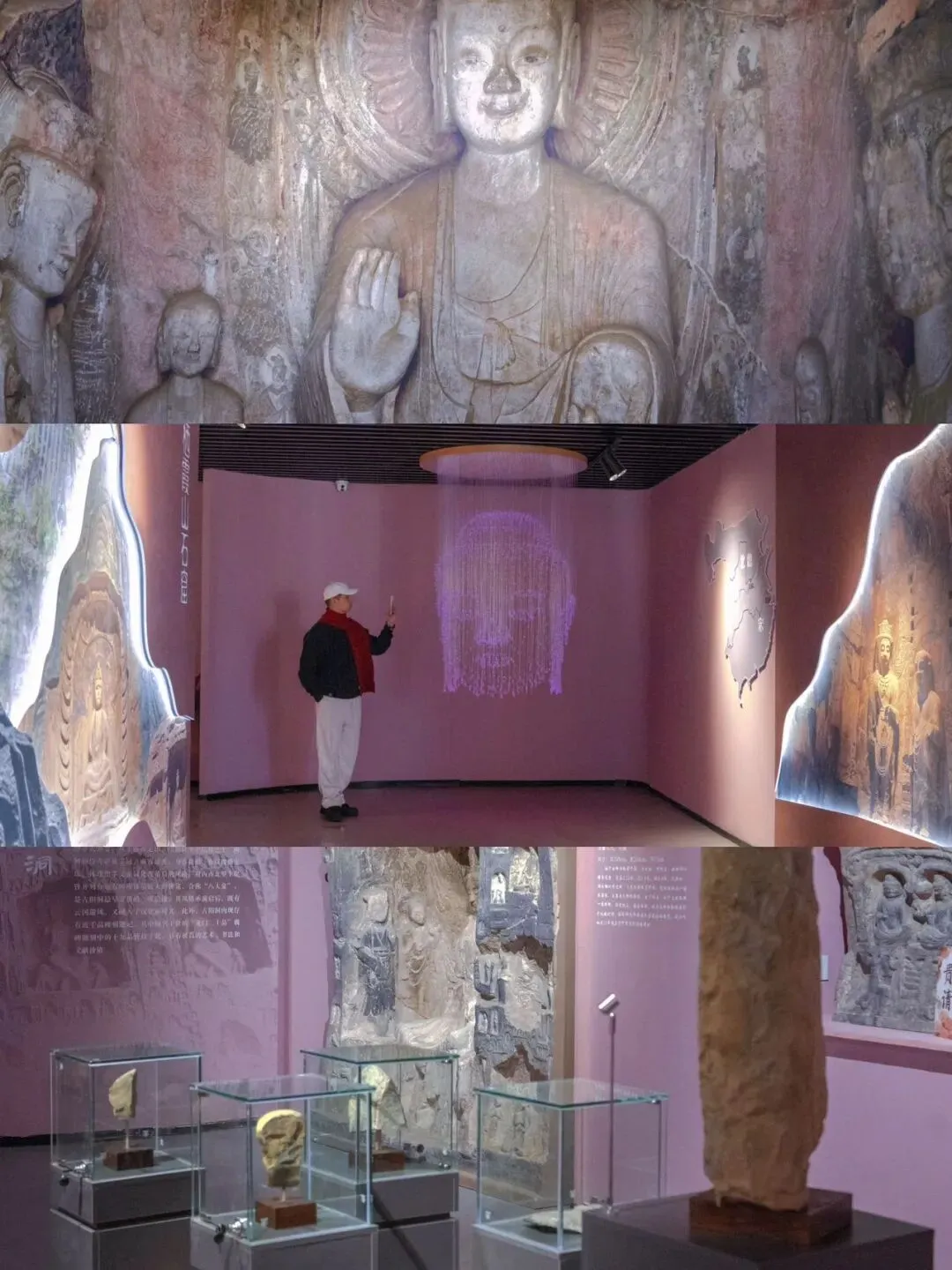 不做拙劣修补,只以光影为媒!高精度 3D 扫描 + AI 修复技术,让残损的佛头在数字世界重绽容颜,流散的龙门造像残件重现往昔风华;栖霞山著名的 “东飞天” 舒展长袖,与龙门飞天云端共舞,静穆的数字光影里,藏着文明最动人的模样。