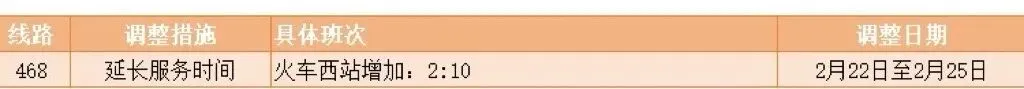 从杭州另一大铁路枢纽杭州西站始发的公交线路也将加强夜间保障服务,其中涉及468路,具体班次与调整日期可参考下表⬇️