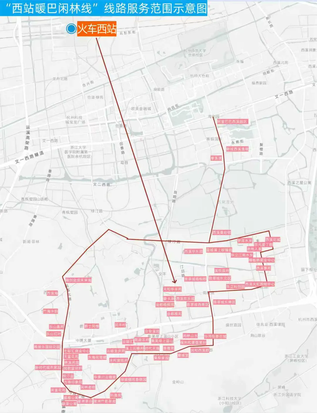 火车西站(5号站台)至蒋村、文新、古荡、黄龙一带
