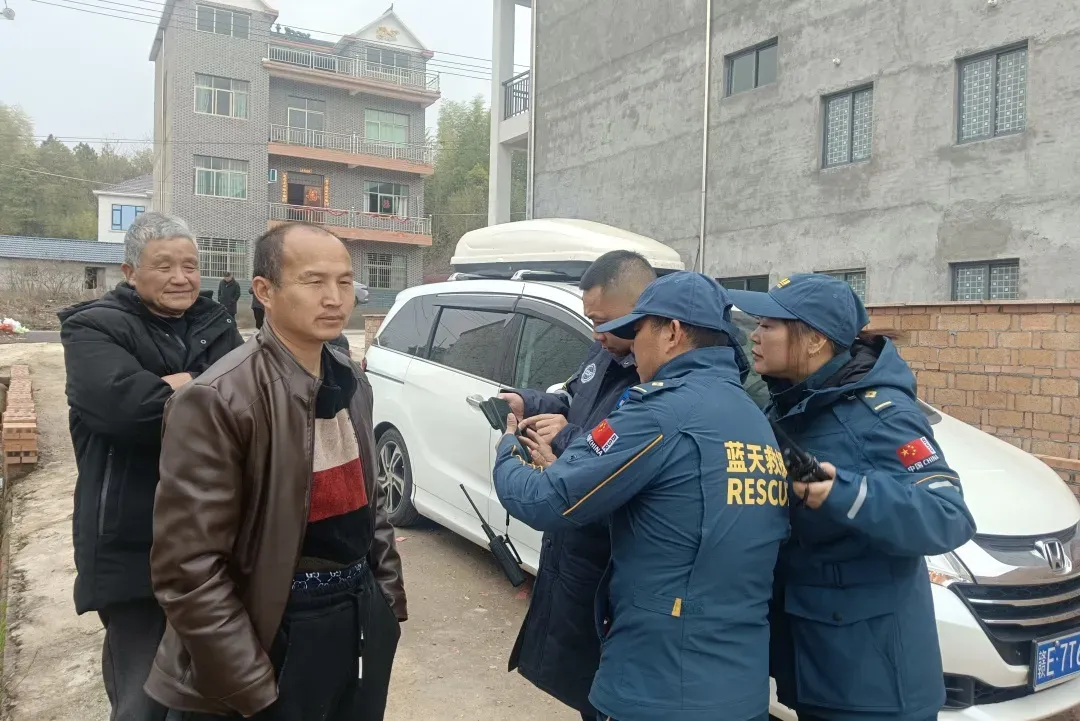 乐平市蓝天救援志愿者协会迅速响应,出动1车5人开展搜寻,两地队伍紧密配合、高效推进,最终在张村成功找到走失老人,确认老人身体无大碍并平安移交家属。