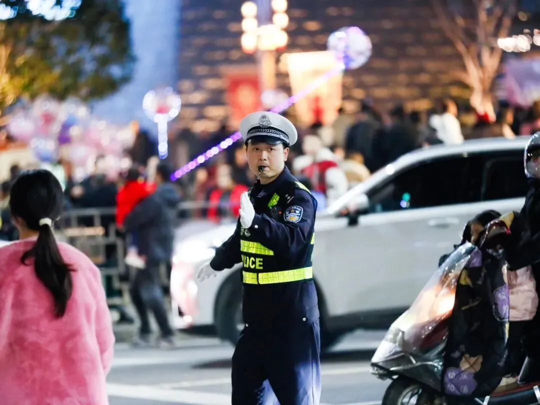 寒风中,民辅警坚守岗位、手势规范、引导耐心,实时指挥车辆有序通行,及时告知停车信息,全力保障“进得去、停得下、出得来”,以高效畅通的交通环境,守护每一位游客的出行路、团圆路,以道路畅通护航新春祥和。