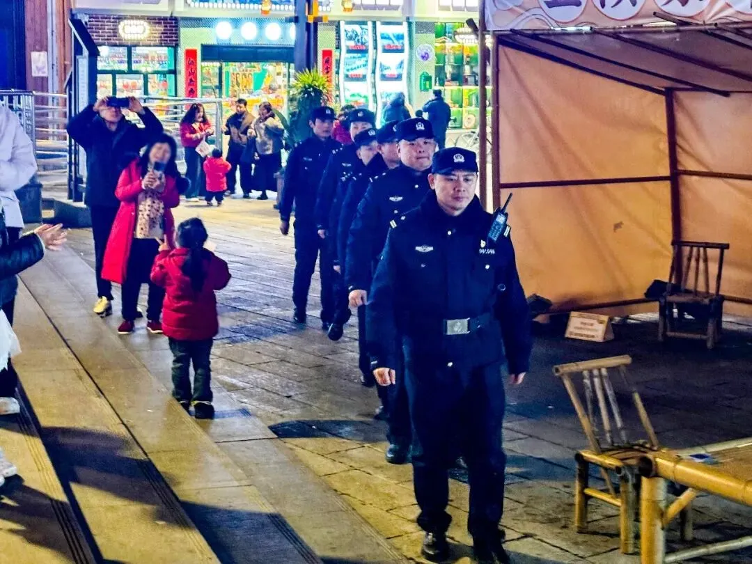 热闹祥和的背后,是忠诚守护;万家团圆的时刻,是藏蓝坚守。为保障景区秩序稳定、游客出行安全、活动有序开展,怀化市公安局鹤城分局坚决扛牢安保维稳政治责任,坚持提前谋划、精准部署、全警上岗、全域防控,每日投入执勤警力220人次,严格实行“定点值守、动态巡逻、快速处置”一体化勤务模式,织密织牢景区立体化安全防护网,以“警察蓝”守护“新春红”,用忠诚担当绘就春节假期最美平安底色。