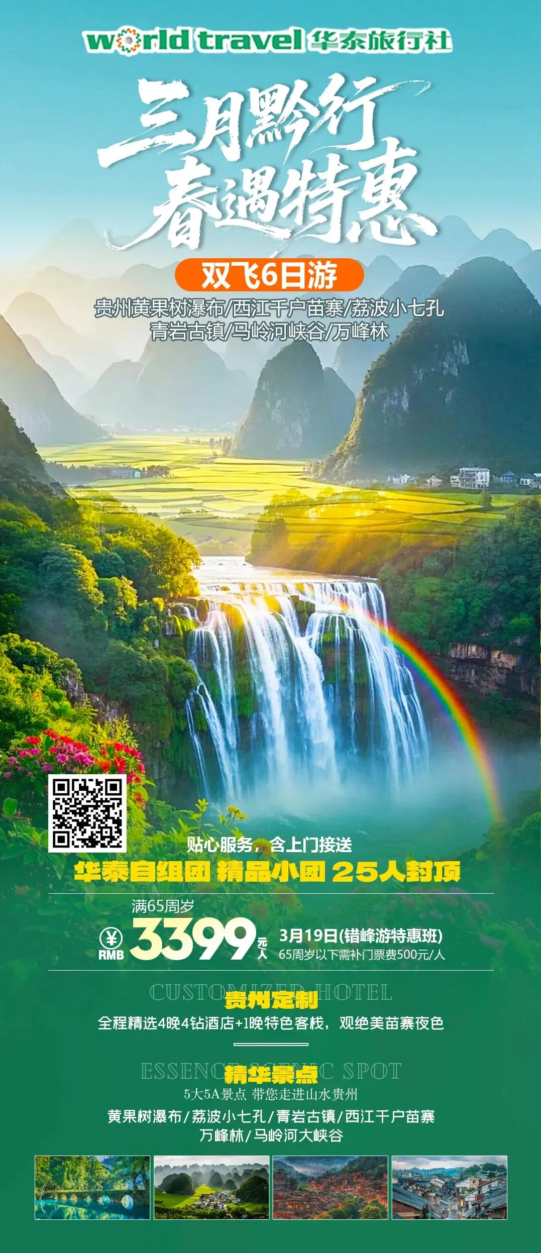 ✔ 精华景点:黄果树+小七孔+千户苗寨+万峰林+青岩古镇