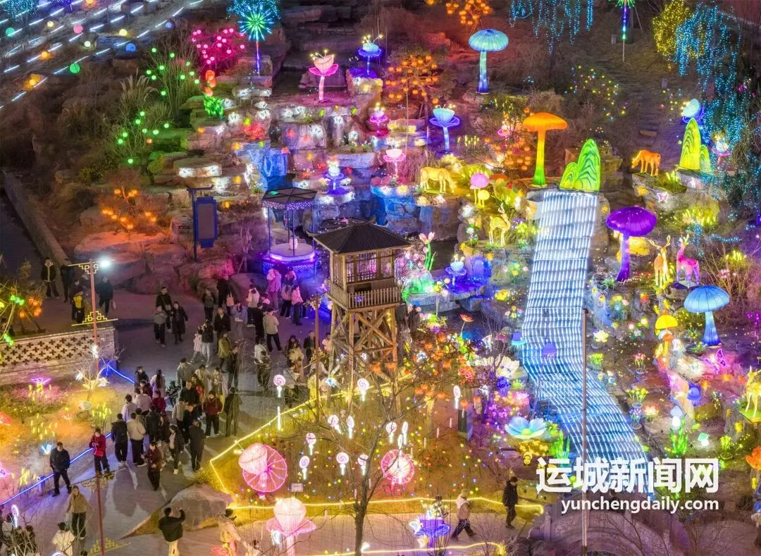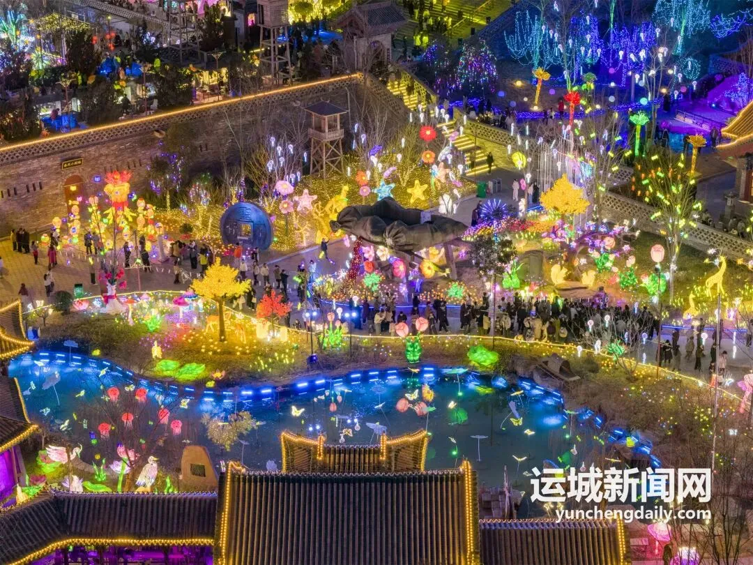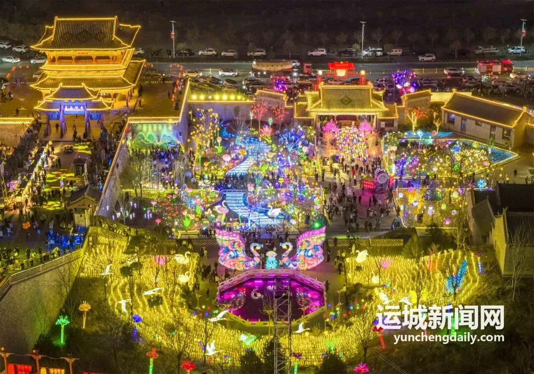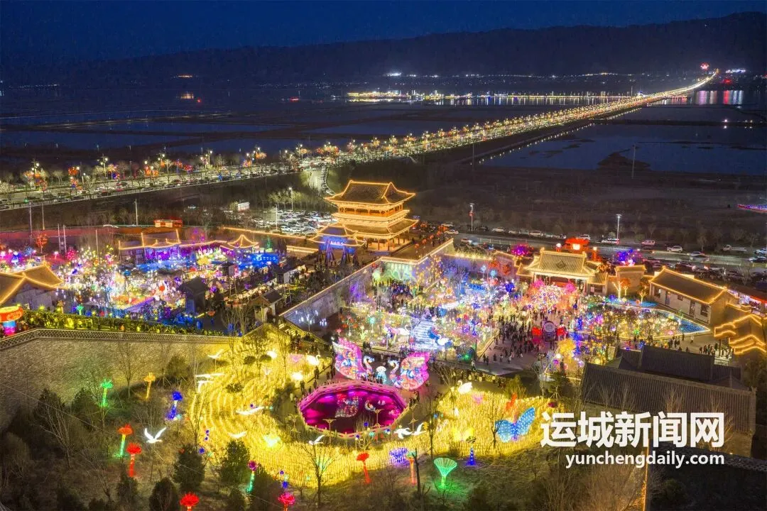 春节假期,河东池盐文化博览园灯火璀璨,游人如织。