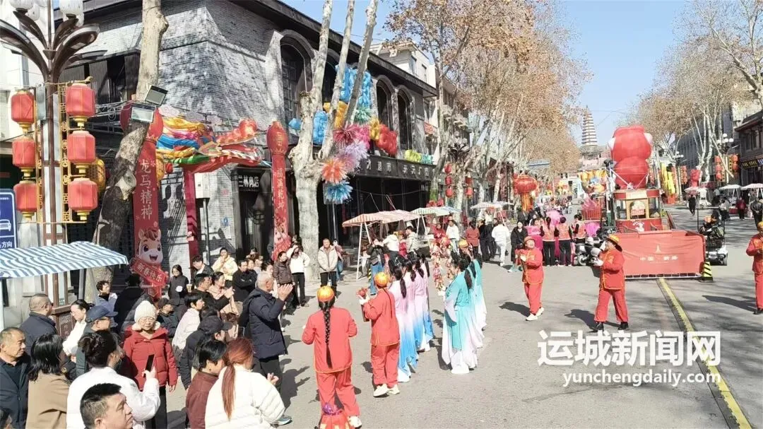 新春期间,这里民俗活动轮番上演:河东舞狮腾挪跳跃、威风凛凛,打铁花流光溢彩、震撼人心,还有沉浸式实景剧、蒲剧演唱、财神送福等节目精彩不断,引得游人驻足围观、流连忘返。