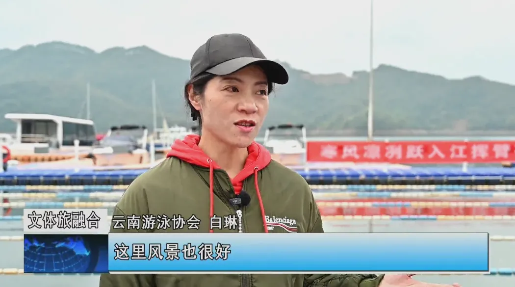 云南游泳协会白琳说:“我是第一次来这个万峰湖,这里风景也很好,水质也非常好,你看这个天然的泳池里面全都是鱼,我们跟鱼一起畅游在这个湖里面,真的是环境非常好。”
