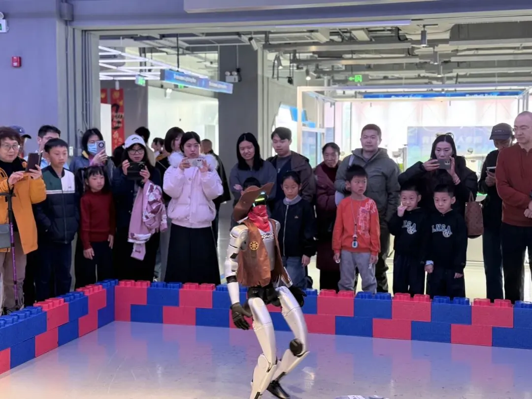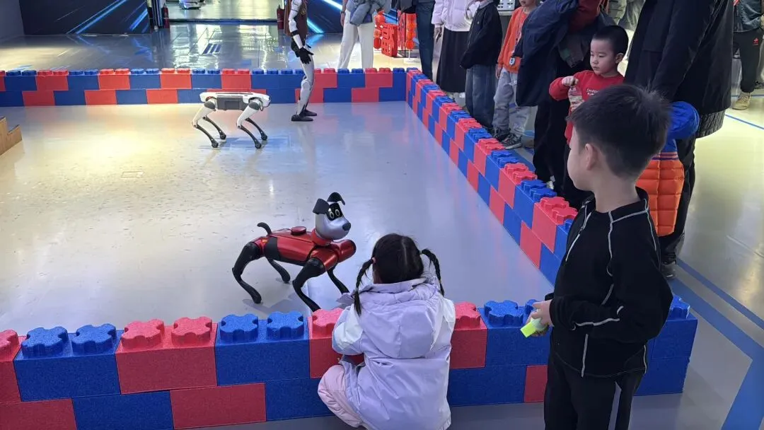 据机器人4S店——Robot Mall经理范建森介绍,春节期间,店内推出“机甲贺岁”互动专场,仿生机器人、工业机器人、陪伴型机器人等50余款机型齐上阵,机器狗空翻跳舞、“爱因斯坦”机器人科普答疑、人机对弈猜拳等互动项目全线开放,让市民游客实现与机器人的零距离接触。