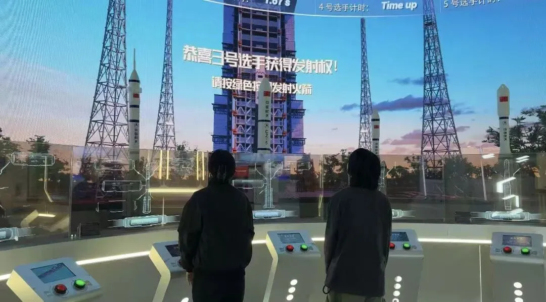 游客体验火箭发射。