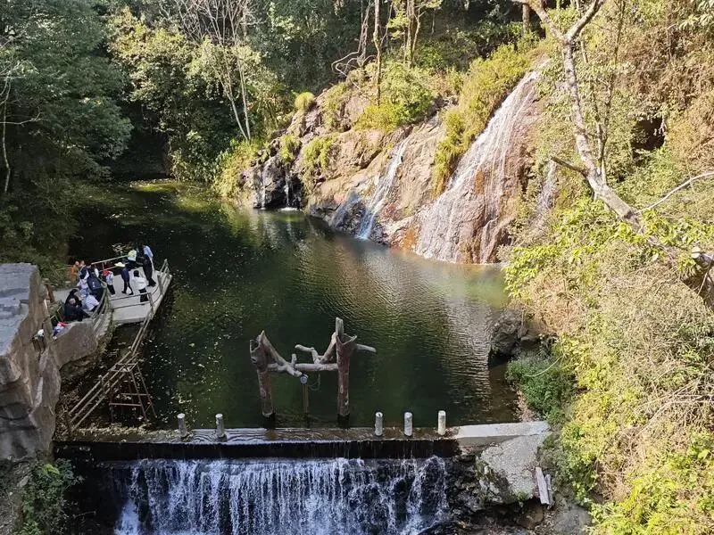 游客们徜徉山水间,赏生态美景、品自然野趣,尽情享受惬意舒适的假日时光。